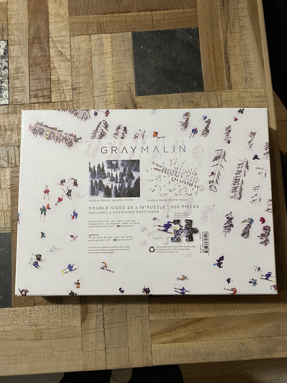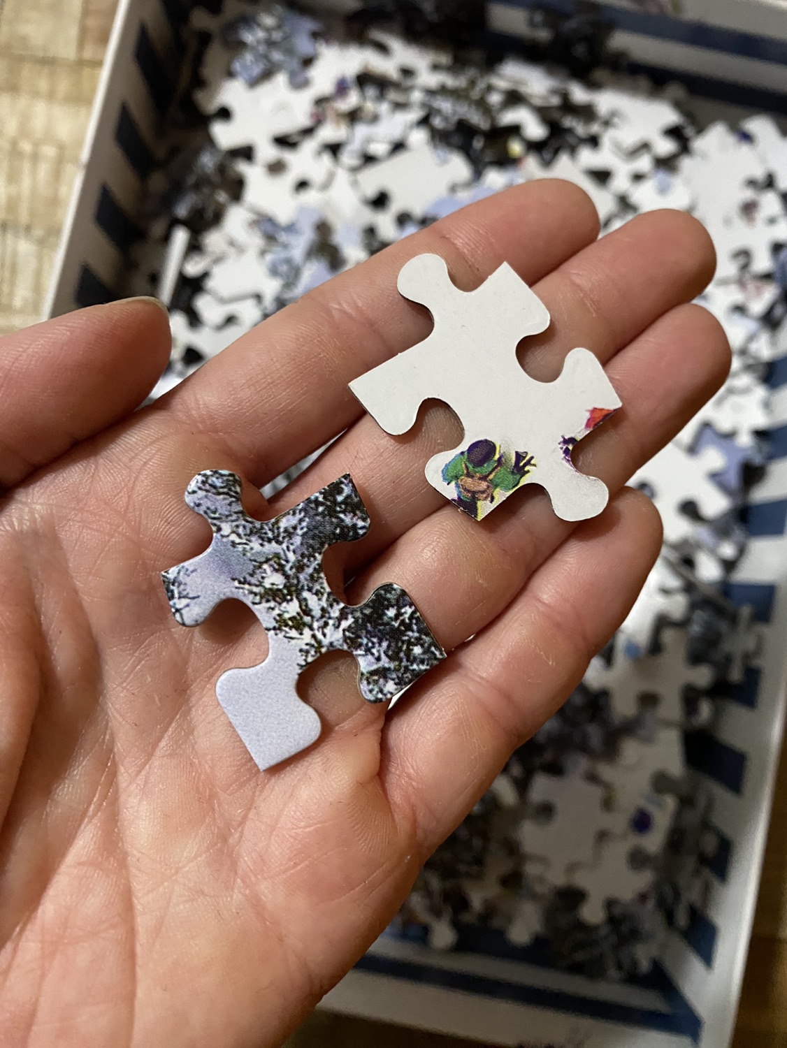 275Two puzzles in one! One side is glossy and the other is matte, so it’s easy to tell the difference, but both sides of the puzzle are still very challenging! It’s really high quality with hard pieces and sharp edges. The pieces are all consistent shapes and sizes. Pick up near Dundas West station