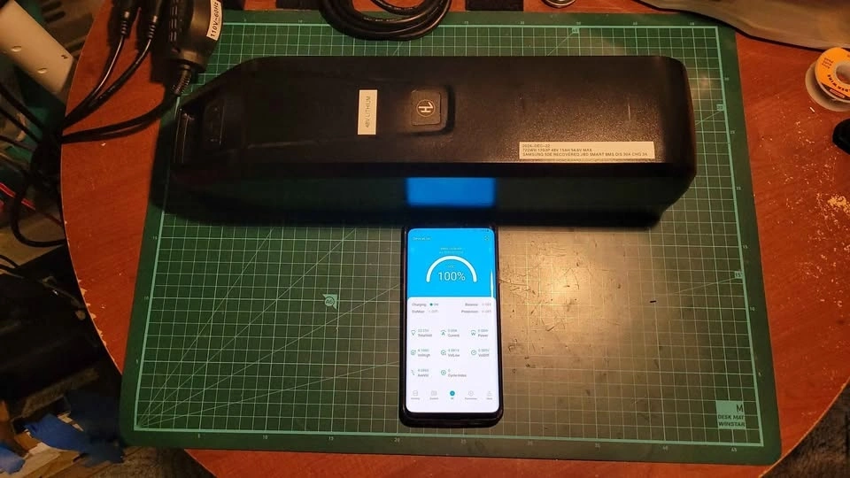 Custom built 48v 15ah 722wh (54.6v max) ebike lithium ion battery using repurposed genuine Samsung 50e 21700 cells. 14s3p config. Has a jbd smart Bluetooth bms rated at 30a for wireless cell monitoring, balancing and customization as well as for safety. Battery has been used 10 - 15 times so it's verified safe and working pretty much like new.
