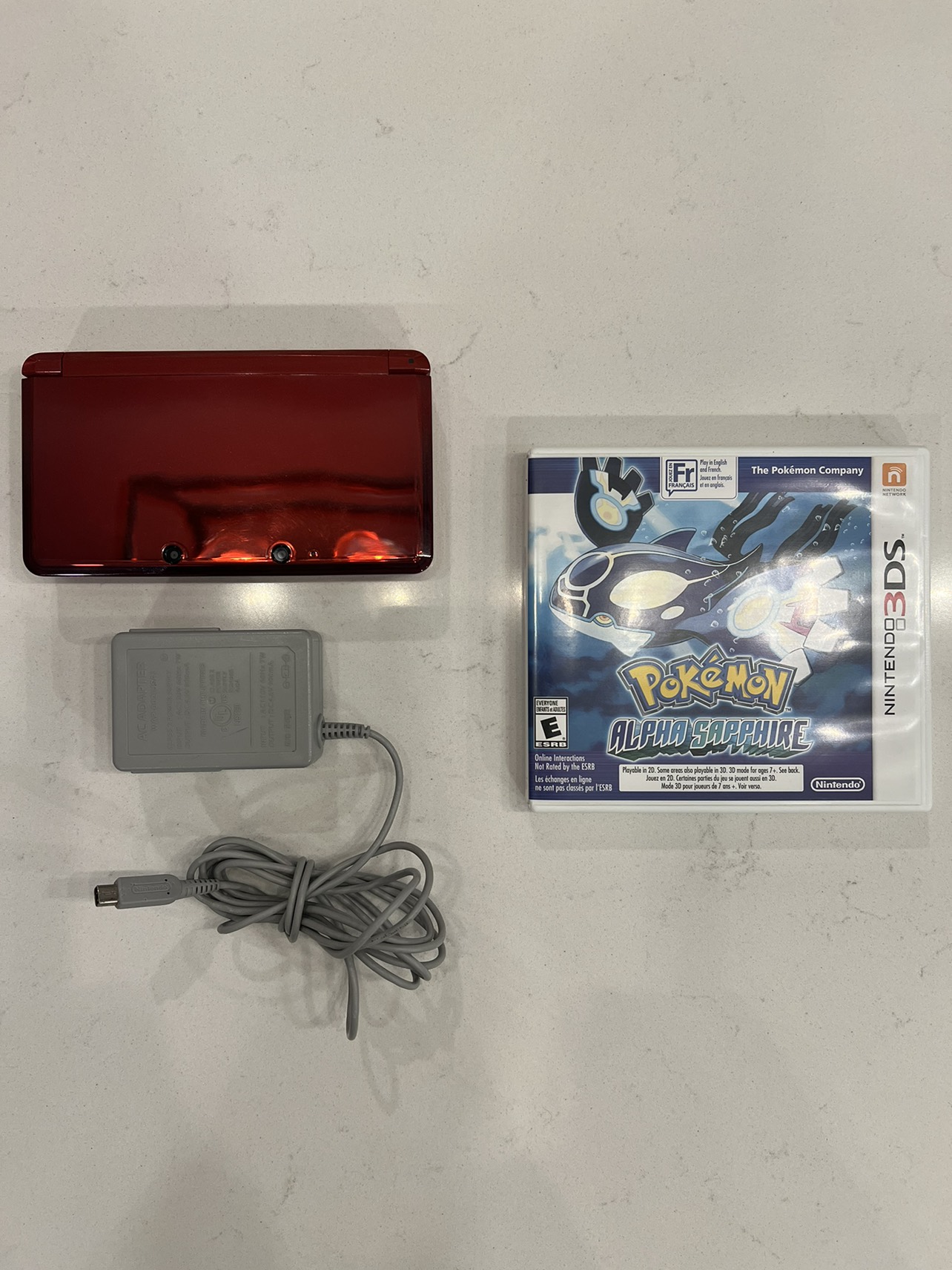 Nintendo 3DS with game (Pokemon Alpha Sapphire), charger and stylus. Really clean and in good condition!! Top screen has screen protector.