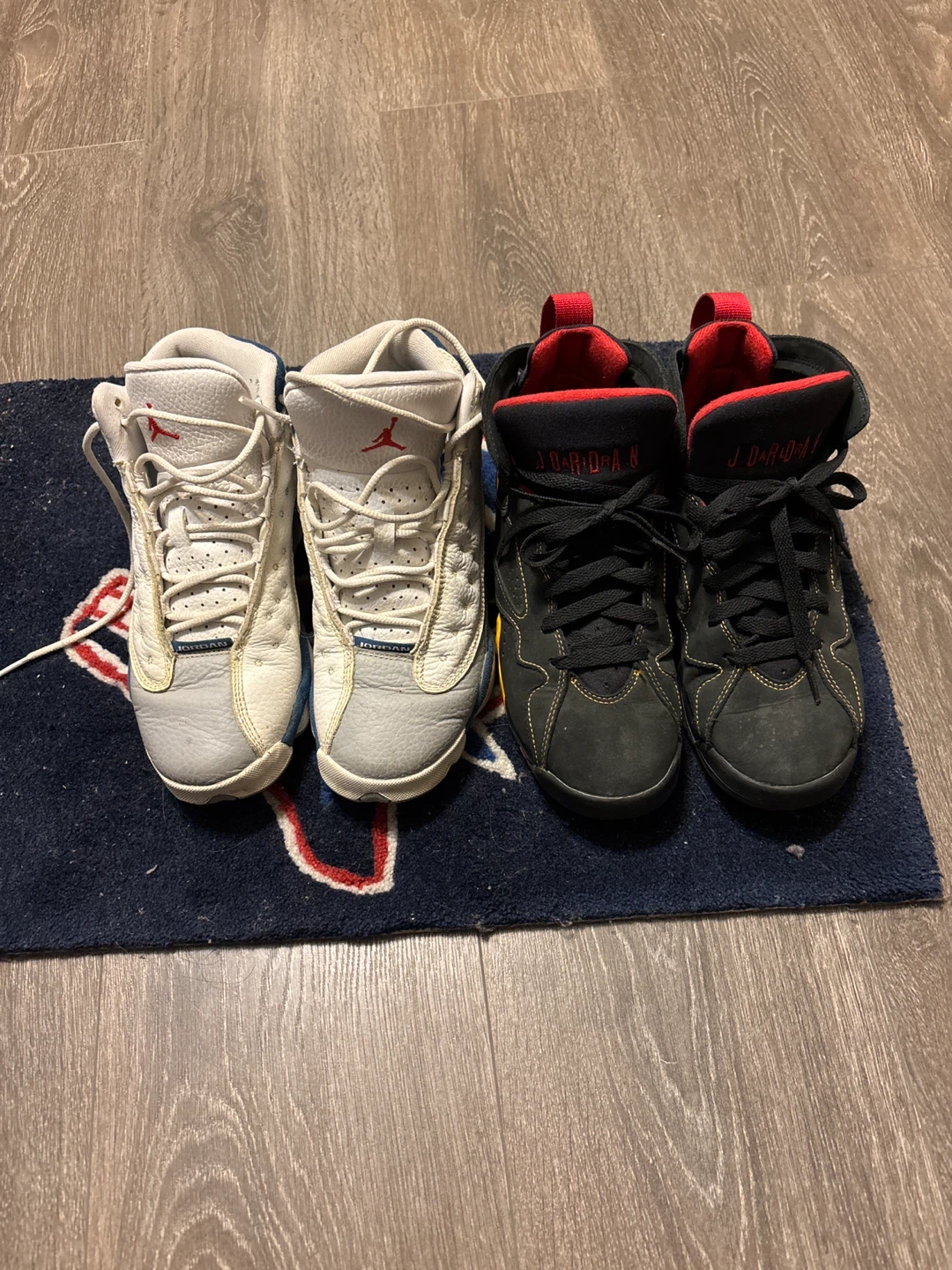 Selling a pair of Jordan 13s and Jordan 7s. They show signs of wear, as you can see in the photos.