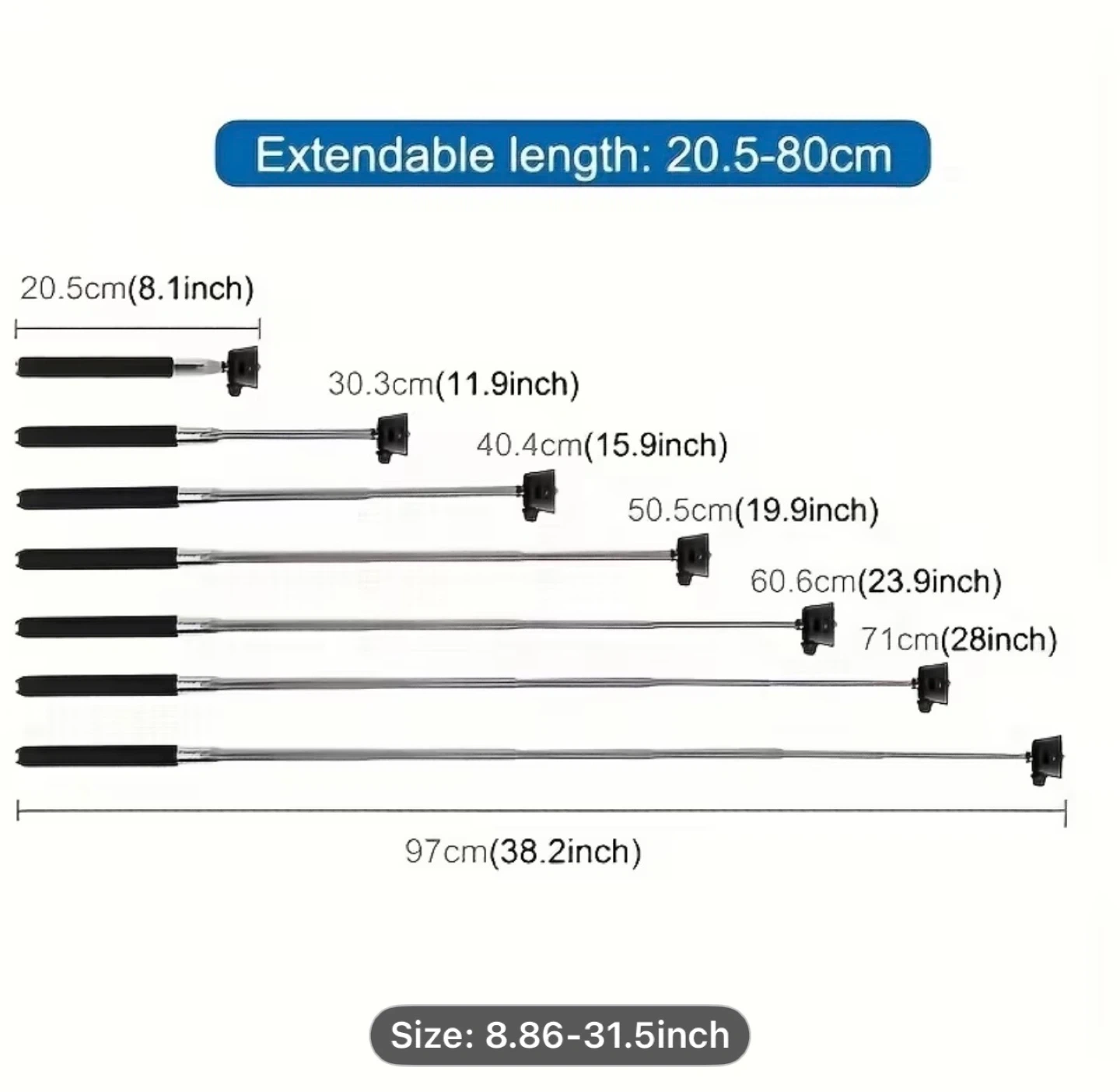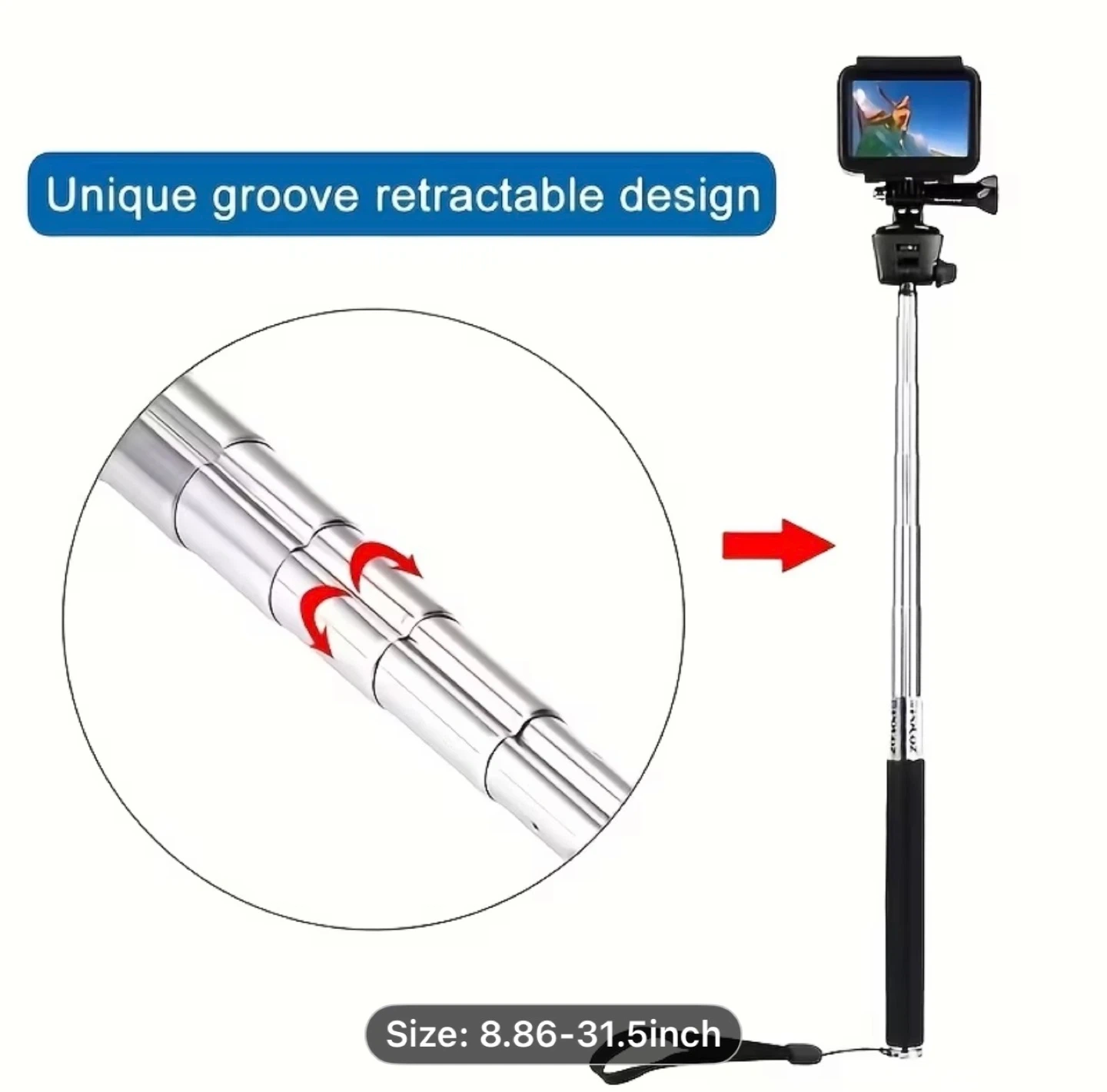 PULUZ Extendable Handheld Selfie Monopod for , Insta360, DJI and Other Action Cameras, Length: 8.86-31.5inch