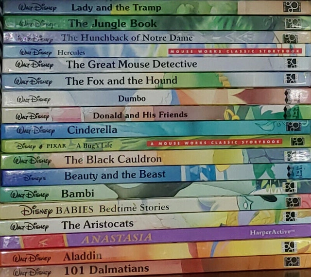 Selling a set of 37 Disney oversized hard cover books published by Mouse Works & Gallery. Originally retailed for over $400, asking $150 firm. Titles include: 101 Dalmatians, Aladdin, Anastasia, Aristocats, Babies Bedtime Stories, Bambi, Beauty and the Beast, Black Cauldron, Bug's Life, Cinderella, Donald Duck and his Friends, Dumbo, Fox and the Hound, Great Mouse Detective, Hercules, Hunchback of Notre Dame, Jungle Book, Lady and the Tramp, Little Mermaid, Lion King, Lion King - Simba's Pride, Mulan, Oliver & Company, Peter Pan, Pinocchio, Pocahontas, Prince and the Pauper, Rescuers, Rescuers Down Under, Robin Hood, Sleeping Beauty, Snow White and the Seven Dwarfs, Sorcerer's Apprentice, Sword in the Stone, Toy Story, and Winnie the Pooh. These books are used but in good condition. From a smoke-free home. Located in Summerside. Message to arrange a pick up only.