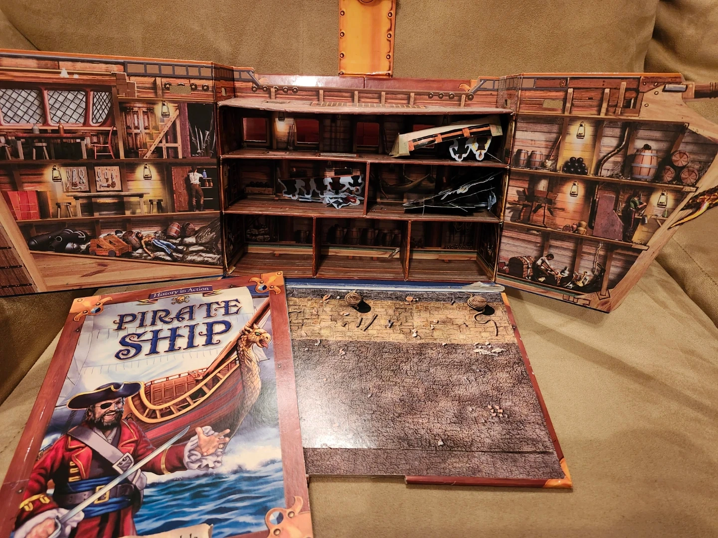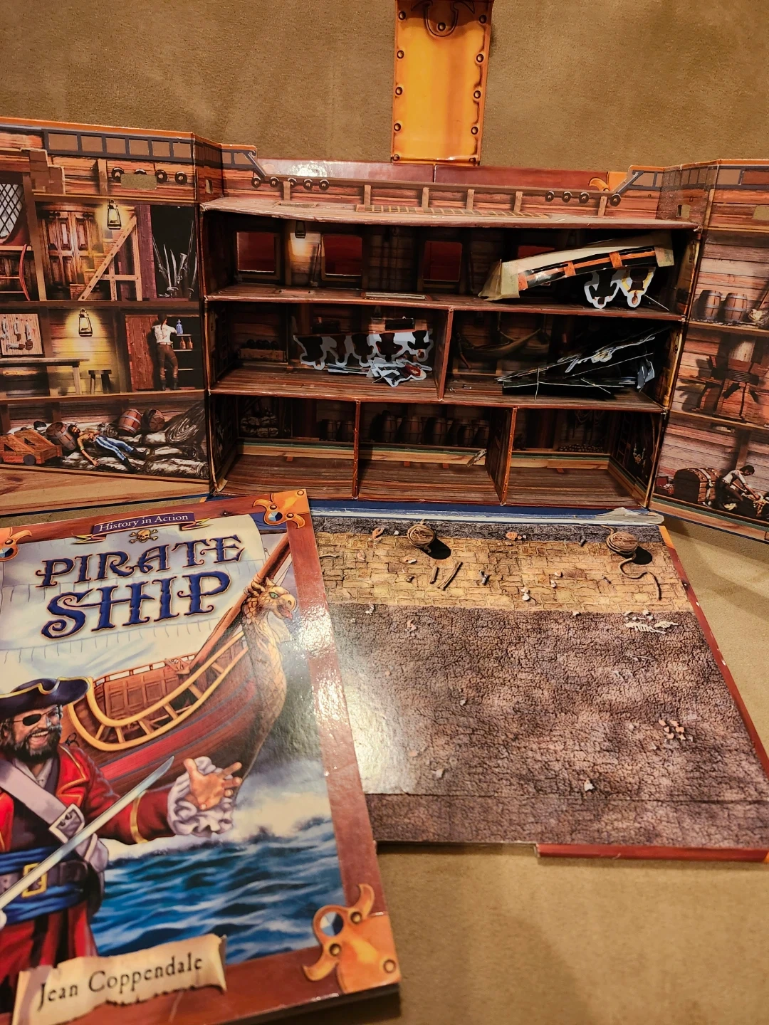 This is the History in Action Pirate Ship model kit. It includes a fold-out pirate ship, press-out models, and a 24-page book.