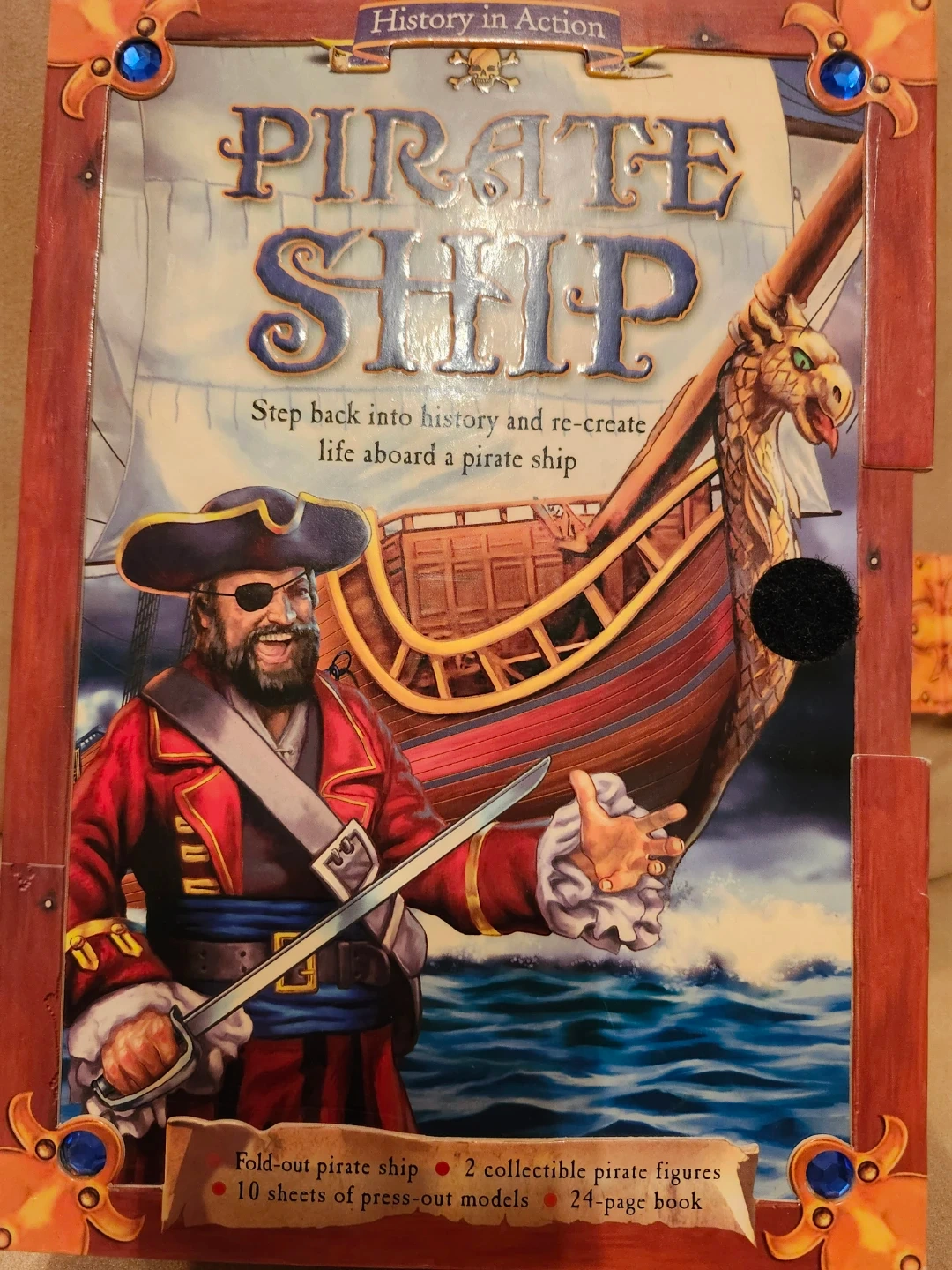 This is the History in Action Pirate Ship model kit. It includes a fold-out pirate ship, press-out models, and a 24-page book.