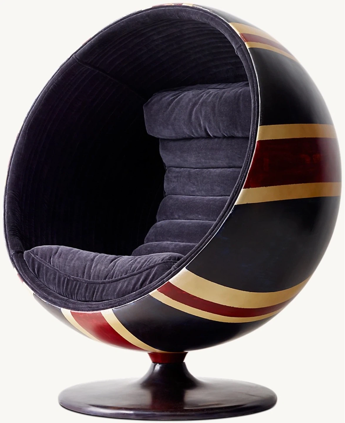 This chair has a unique “interplanetary” lounge feel with a wraparound design that makes it both cozy and visually striking – a true conversation piece.