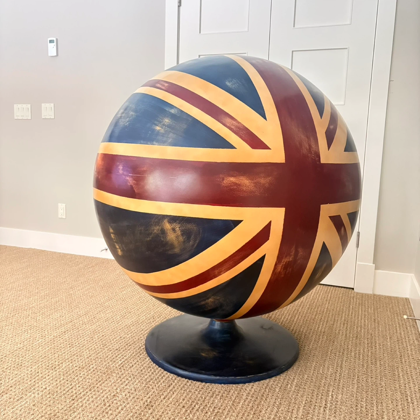 Originally retailed for ~$4,000 USD, asking $2800 CAD OBO. This chair is a true statement piece that blends luxury craftsmanship with bold British flag styling.
