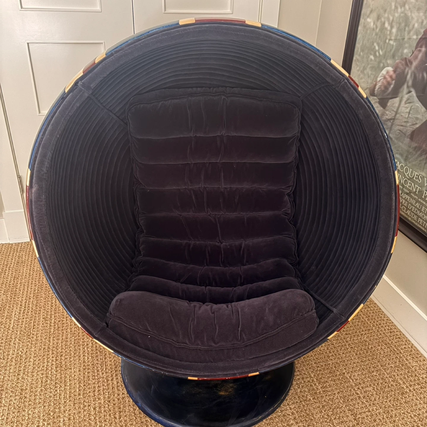 Selling a stunning Restoration Hardware Orbit Union Jack Chair – an iconic designer piece that is no longer produced and extremely hard to find, especially in this condition.