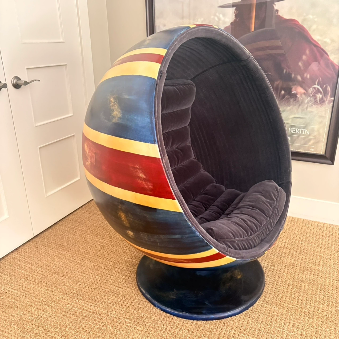 This chair has a unique “interplanetary” lounge feel with a wraparound design that makes it both cozy and visually striking – a true conversation piece.