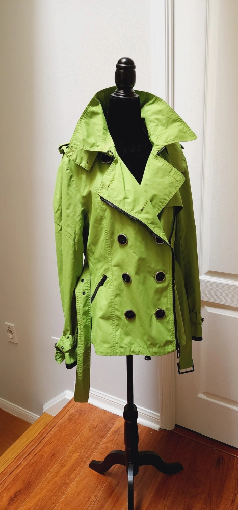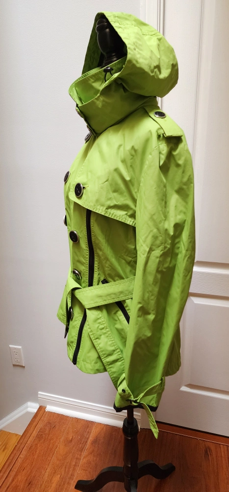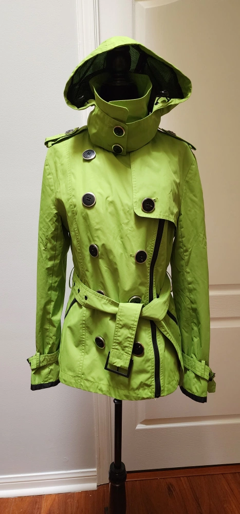 Green Trench coat, bright and versatile. Detachable hood.