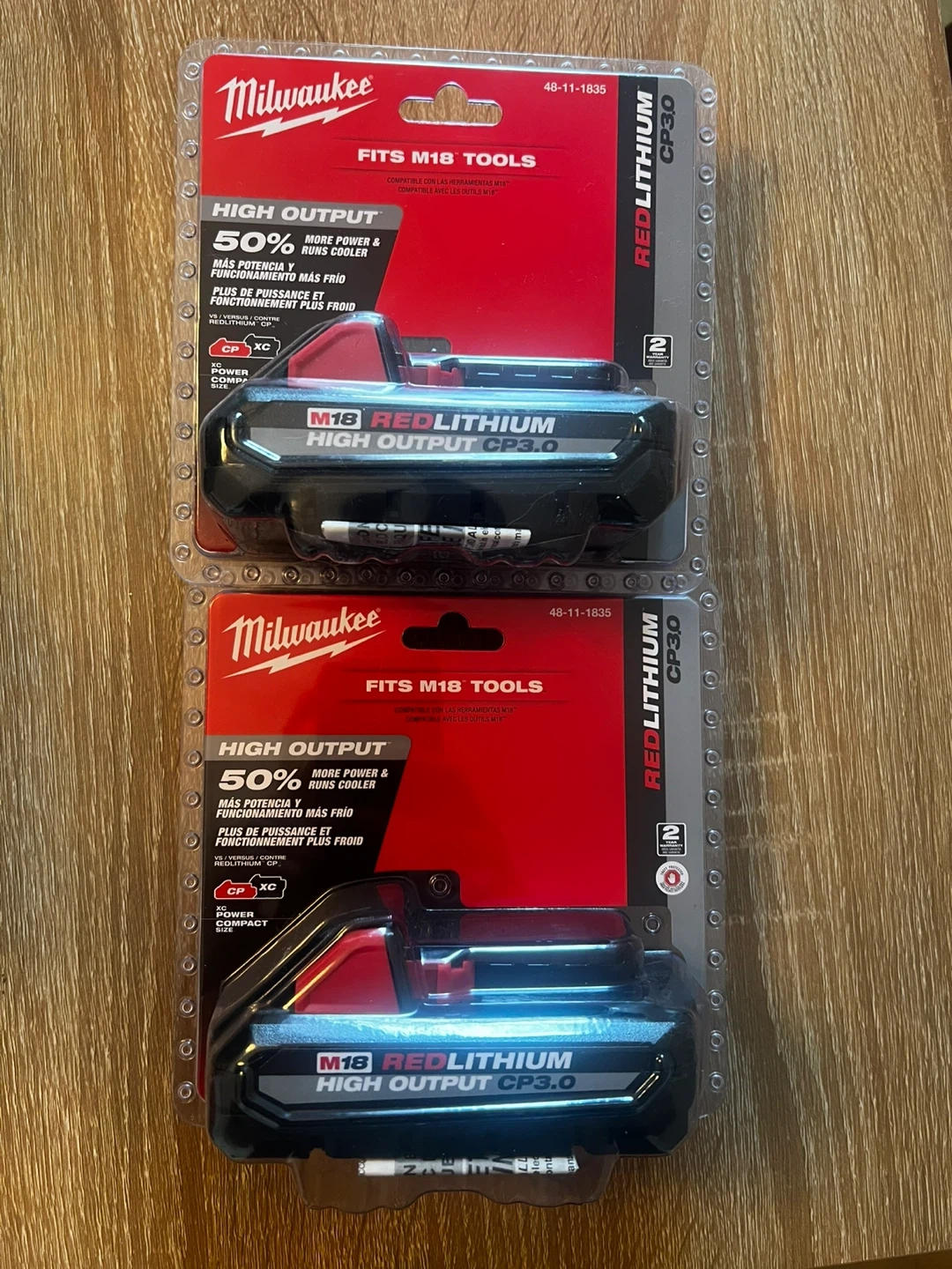 2x Milwaukee Tool M18 REDLITHIUM CP3.0 Ah High Output Battery