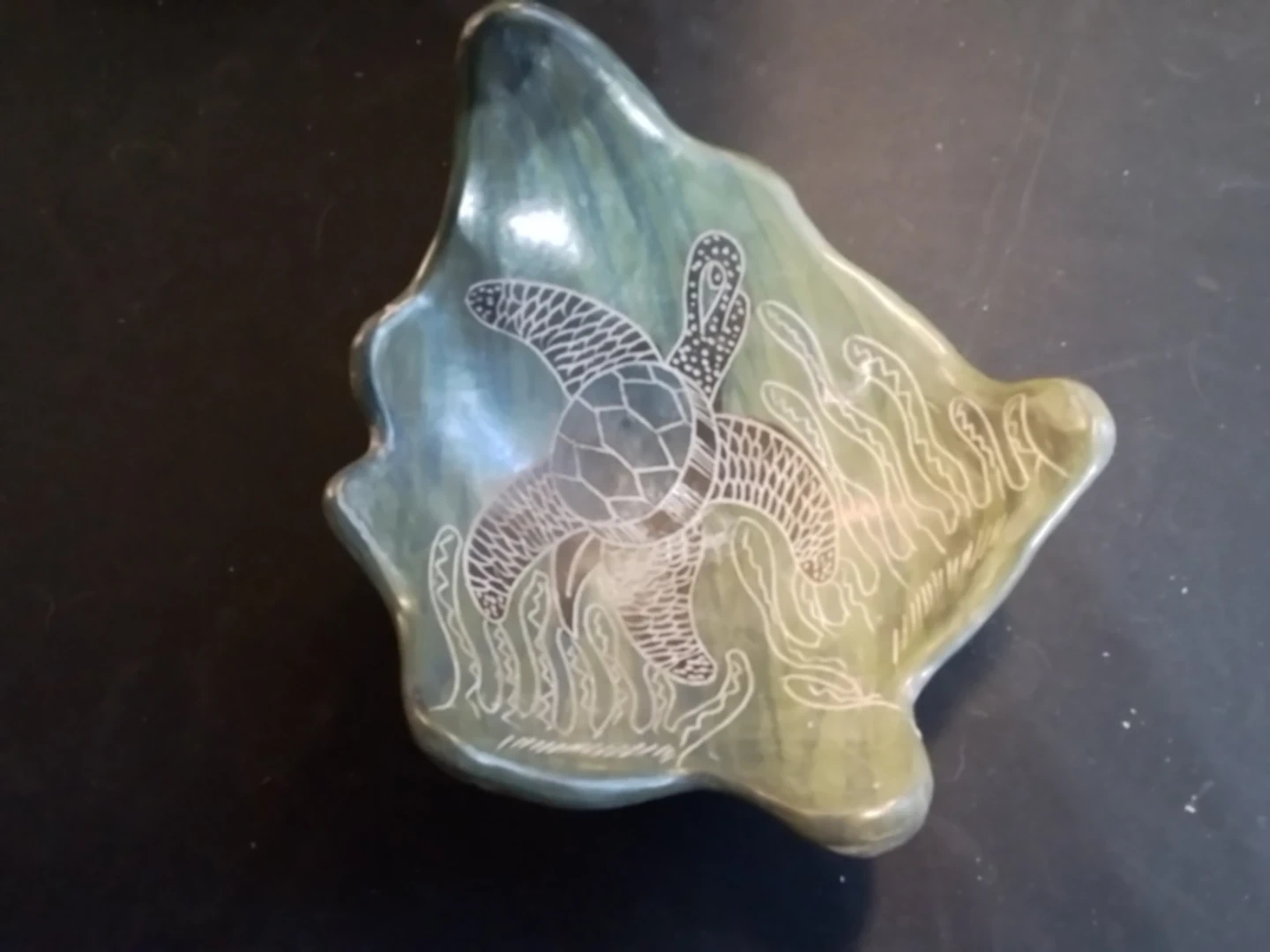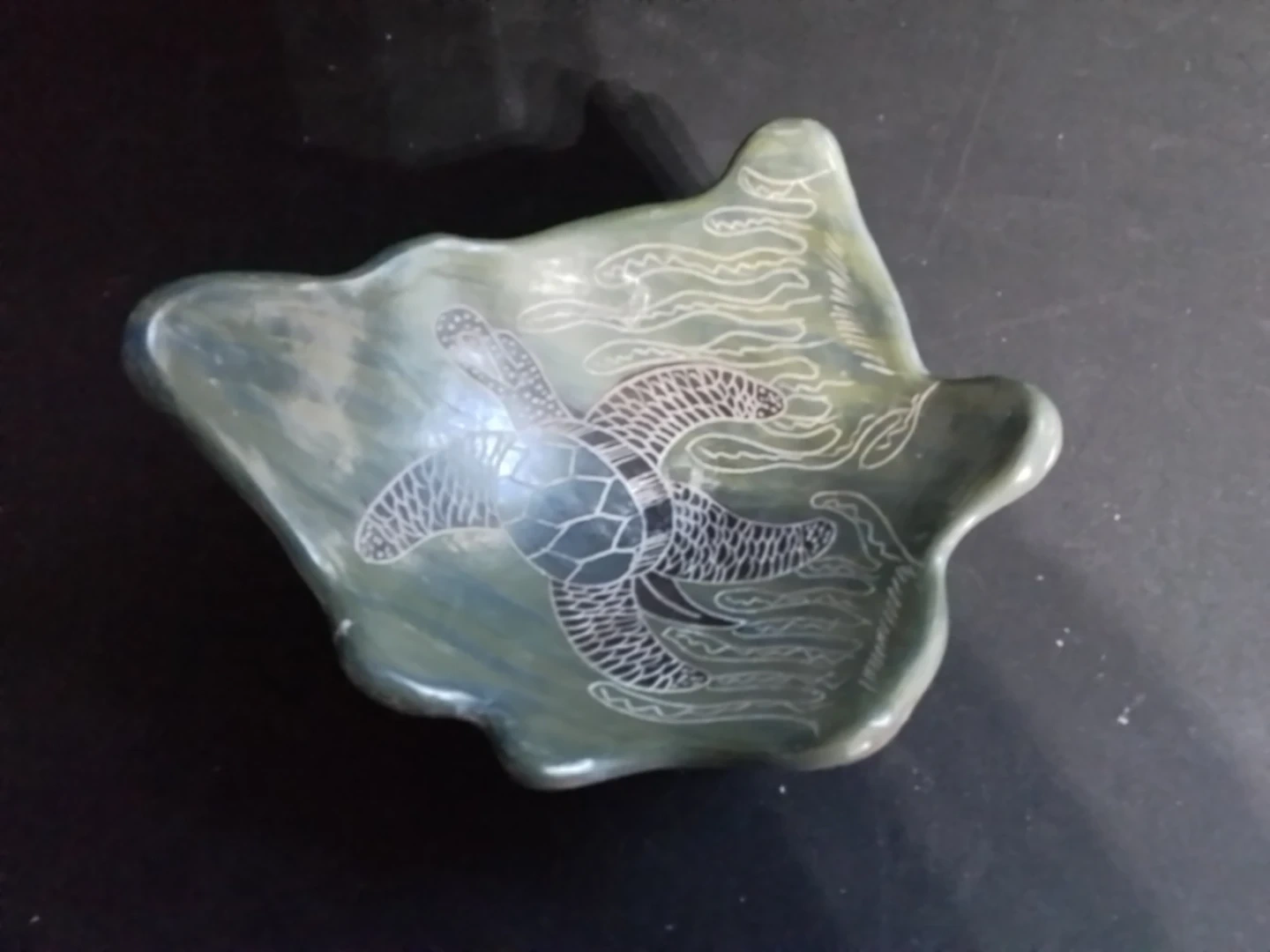 Selling a unique green stone trinket dish featuring a turtle design! It's perfect for holding small items or as a decorative piece