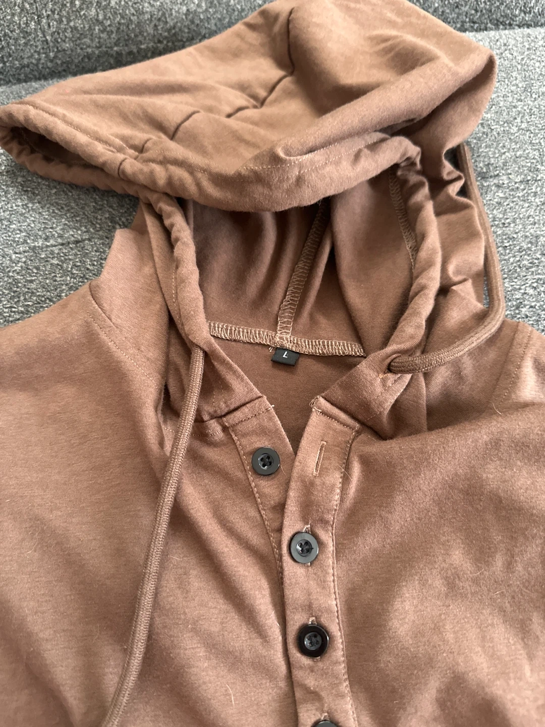Selling a brown hoodie in size large. It's in great condition and has a comfy fit. Perfect for layering or wearing on its own!
