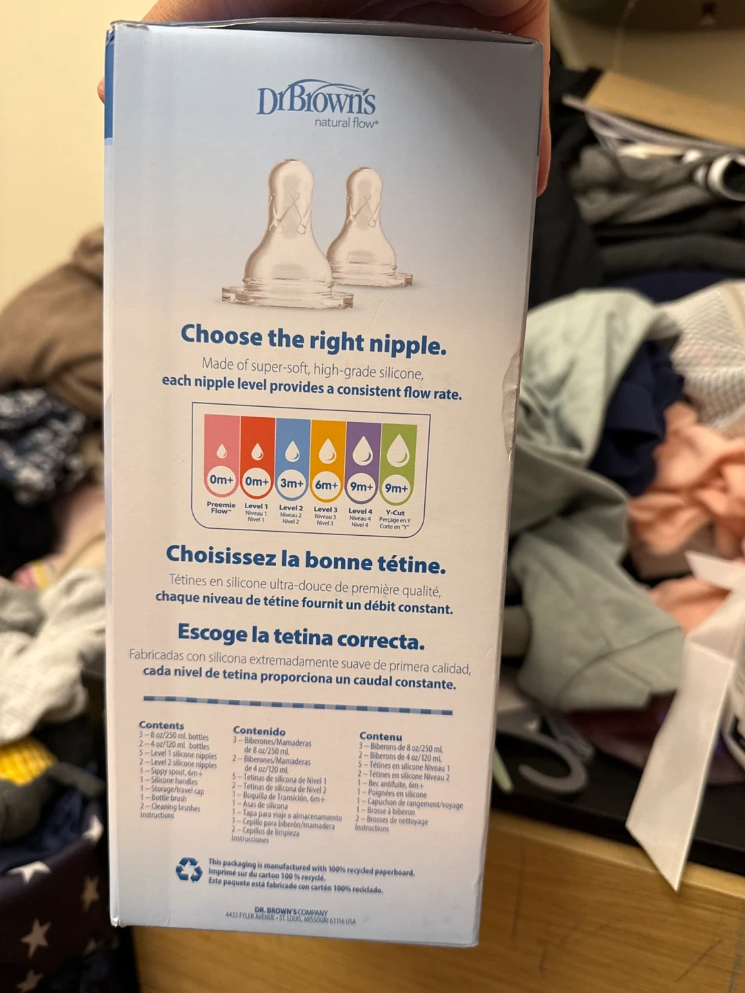 This Dr. Brown's gift set includes 5 baby bottles: three 8 oz/250 ml bottles and two 4 oz/120 ml bottles. It also comes with 2 silicone nipple Level 2 replacements and a bottle brush. All bottles are designed to reduce colic, reflux, and gas.