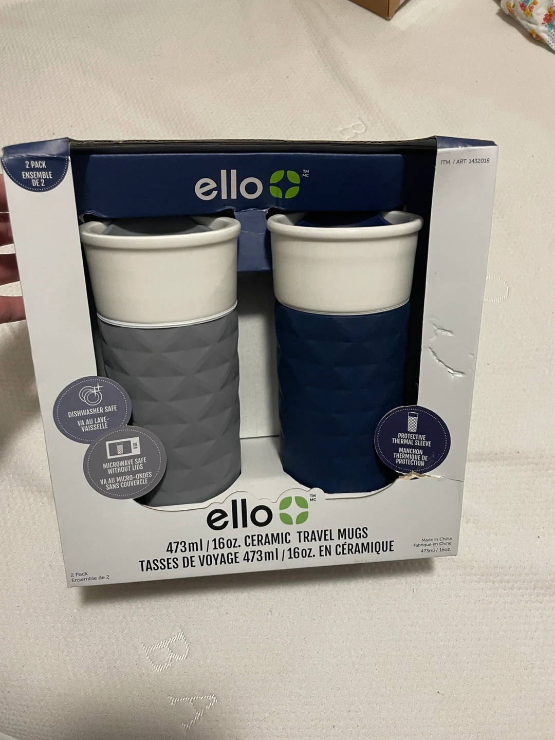 I have a brand new set of ceramic travel mugs for sale! 2 pack. 16oz each. They are dishwasher safe. Brand new!
