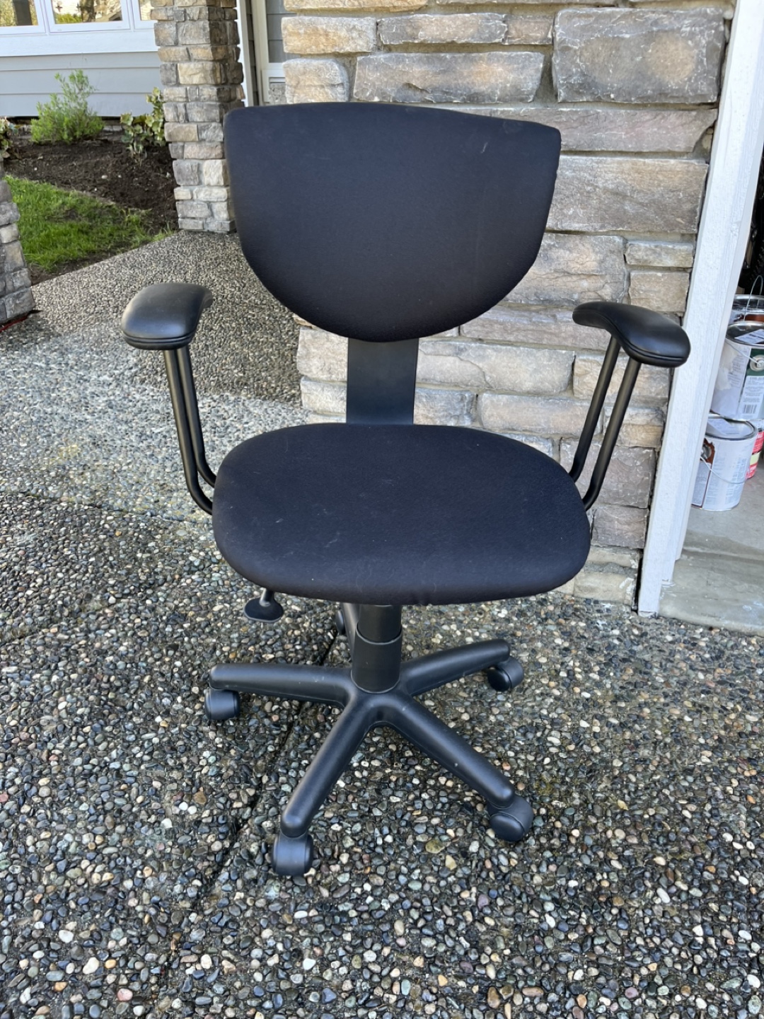1 / 11 / 1Buy & SellBlack Office Chair with ArmsBlack Office Chair with Arms$10Black office chair. Swivels, adjustable, armrests and five rolling wheels. Suitable for home or office use.ConditionGoodWHERE TO MEETCloverdaleView MapSELLERTanjaHCloverdale261 review0 chats·0 favorites·4 viewsSEND CHAT TO SELLERHi TanjaH! I’m interested in your listing.Hi TanjaH! I’m interested in your listing.Get the Karrot app to chatSign In to chat