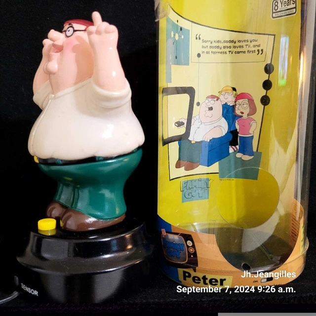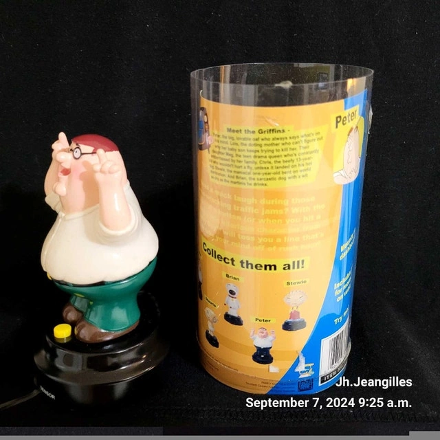 2005 Vintage Family Guy Decoration Figure Dashboard Mount (Talking Peter). Very collectible, never been played with and in protective case. From Gemmy Industries / Twentieth Century Fox Film Corporation. Item # 30519. In very good condition.