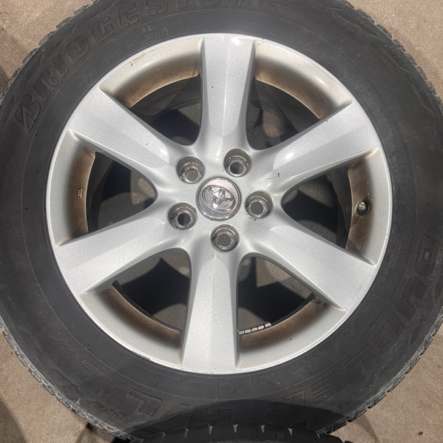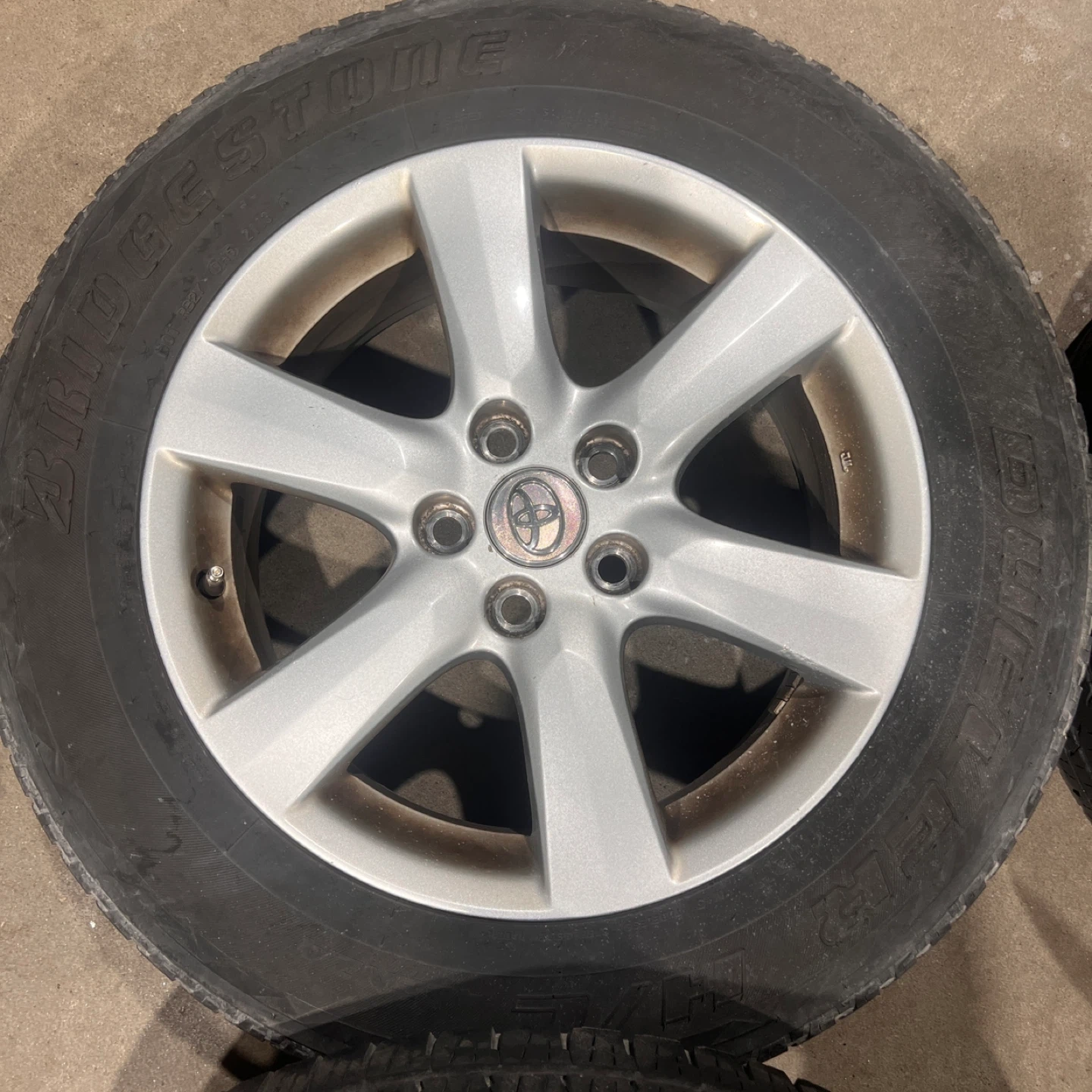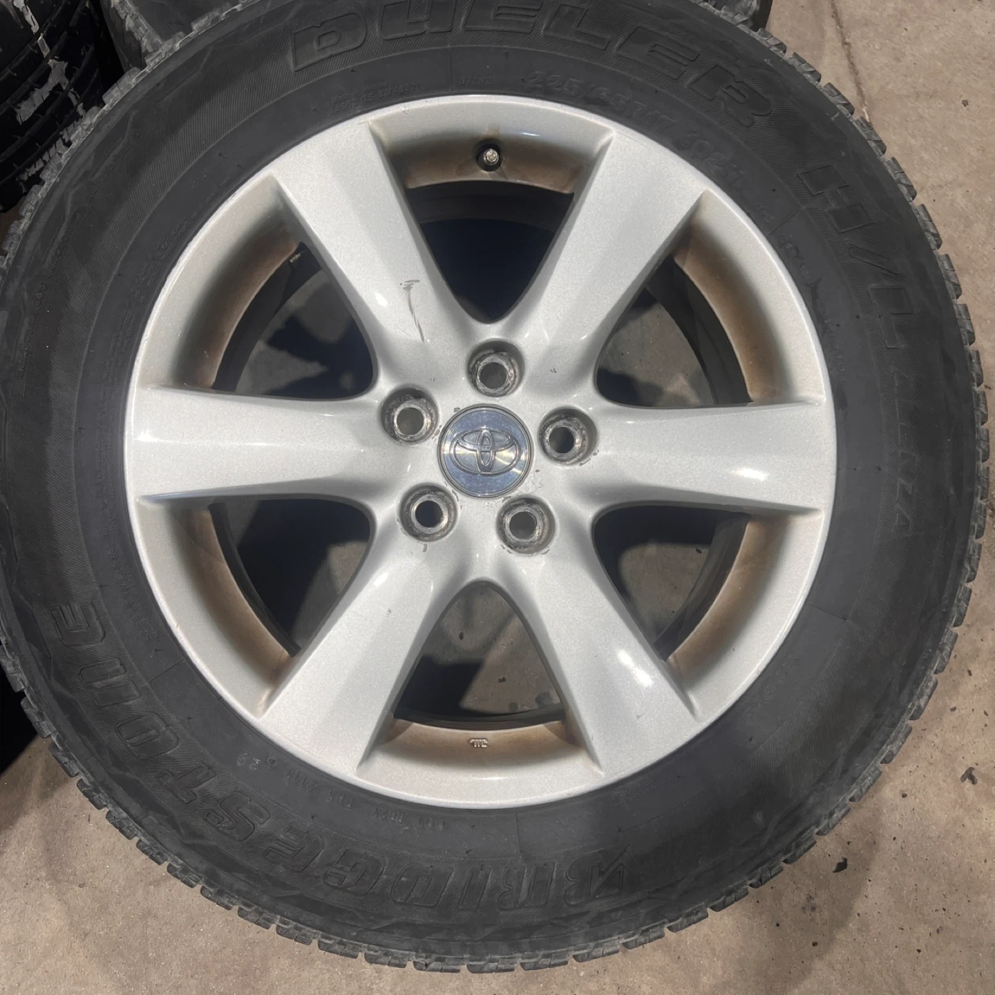 Selling a set of 4 Toyota 17” rims with Bridgestone Dueler tires. The tire size is 225/65R17. They show some signs of wear, but are still in good condition for their age. Tires are no good and will be removed. Fits all years Toyota RAV4 1996-2025 Offset is 45, center bore is 60.1, bolt pattern is 5x114.3