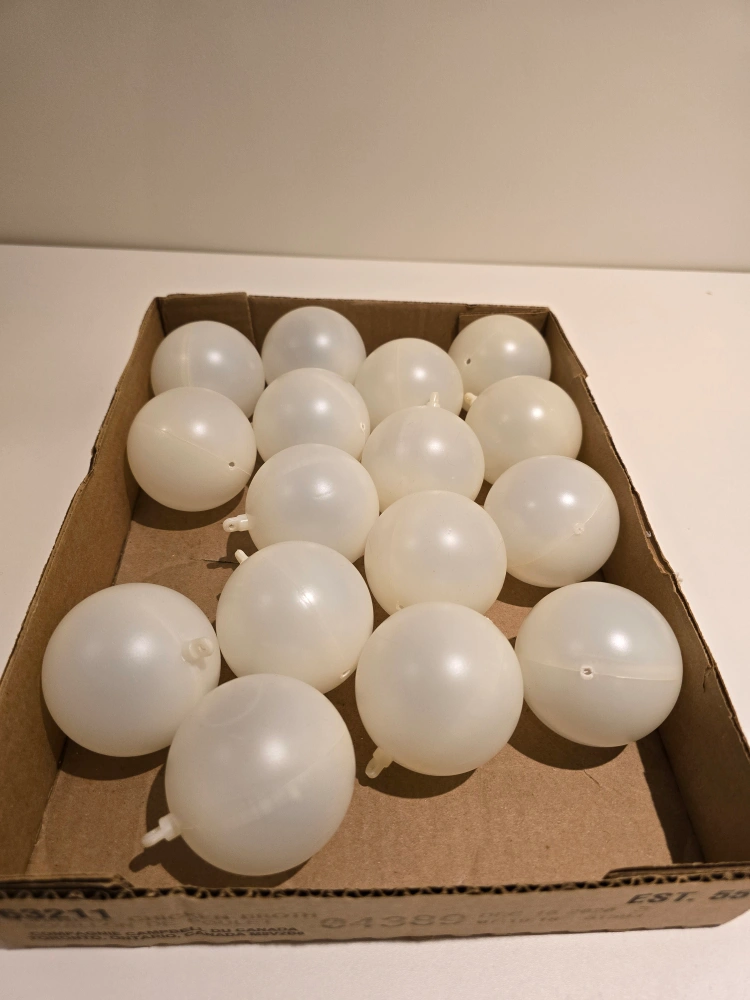 Got 17 plastic ornament balls. DYI craft with kids to decorate their own xmas ornaments. Each ball has a little plastic hole so you can thread a string to hang the ball up on your tree.