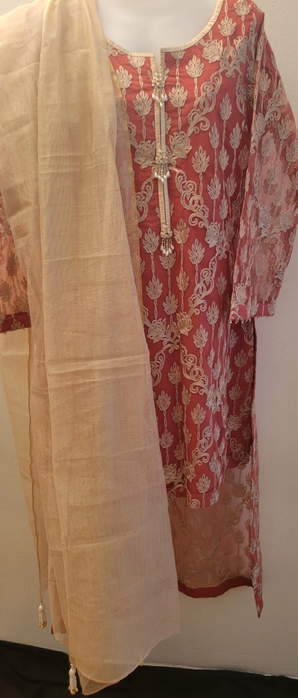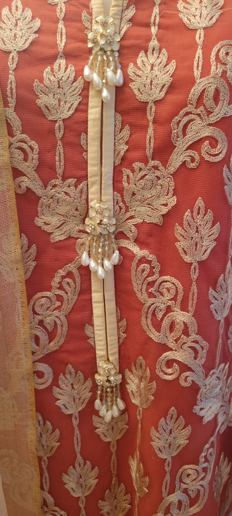3) Khaadi net dupata with fancy pearls tussle on the corners