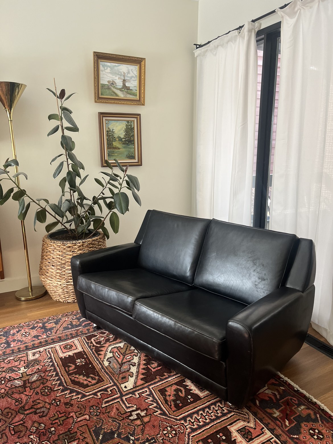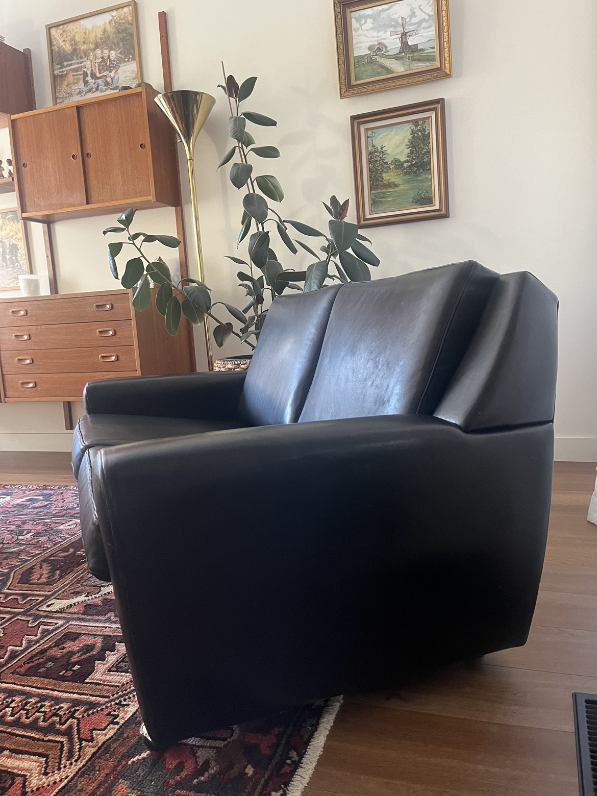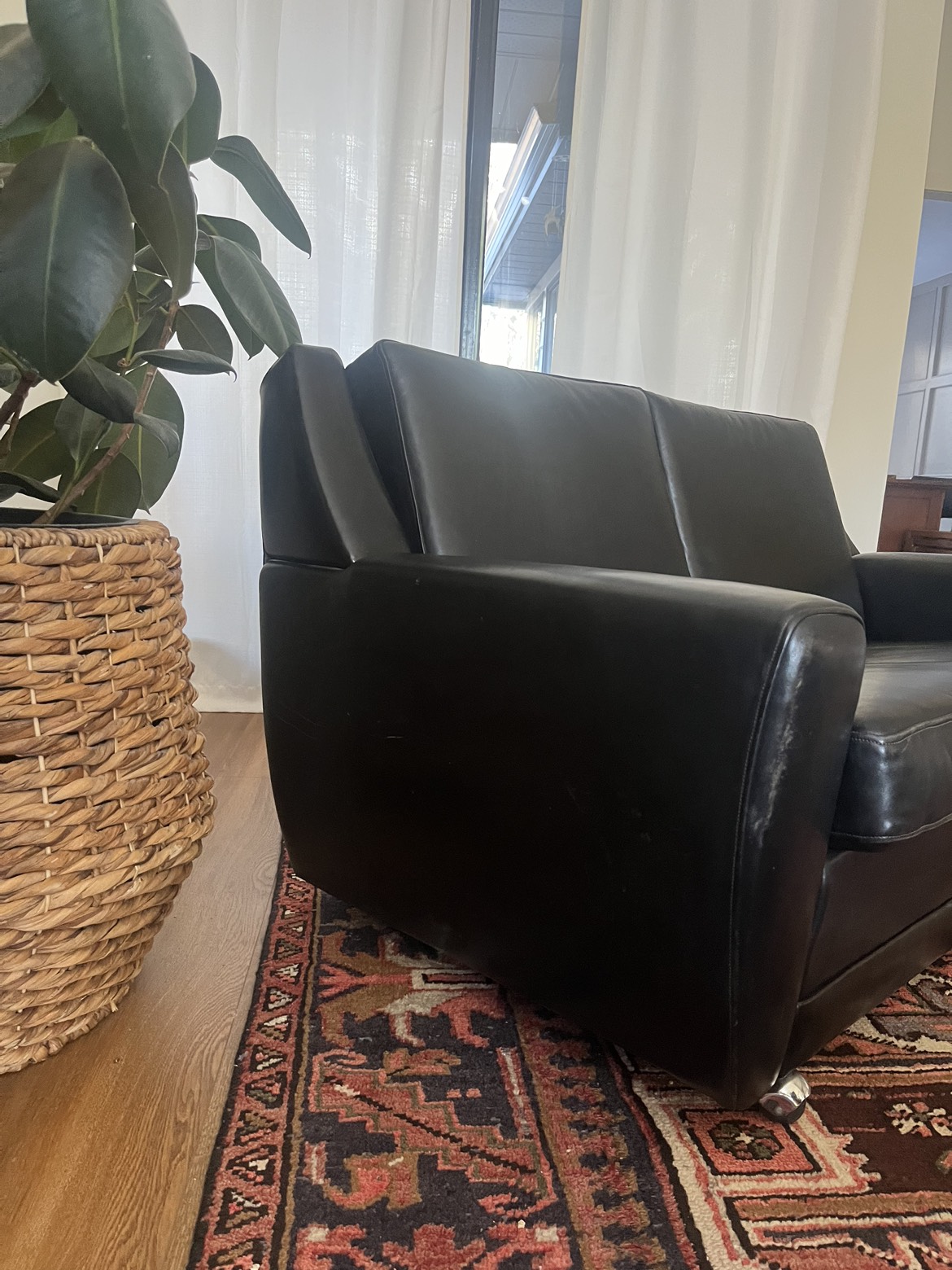 Leather is in fantastic condition especially for the age. No rips, or tears. Some leather conditioner wouldn’t hurt. The patina is beautiful and would bring so much warmth to any room.