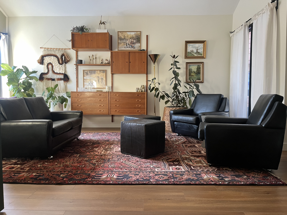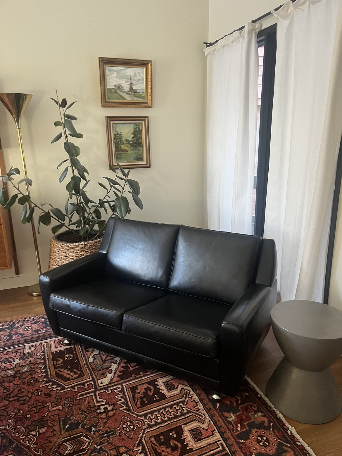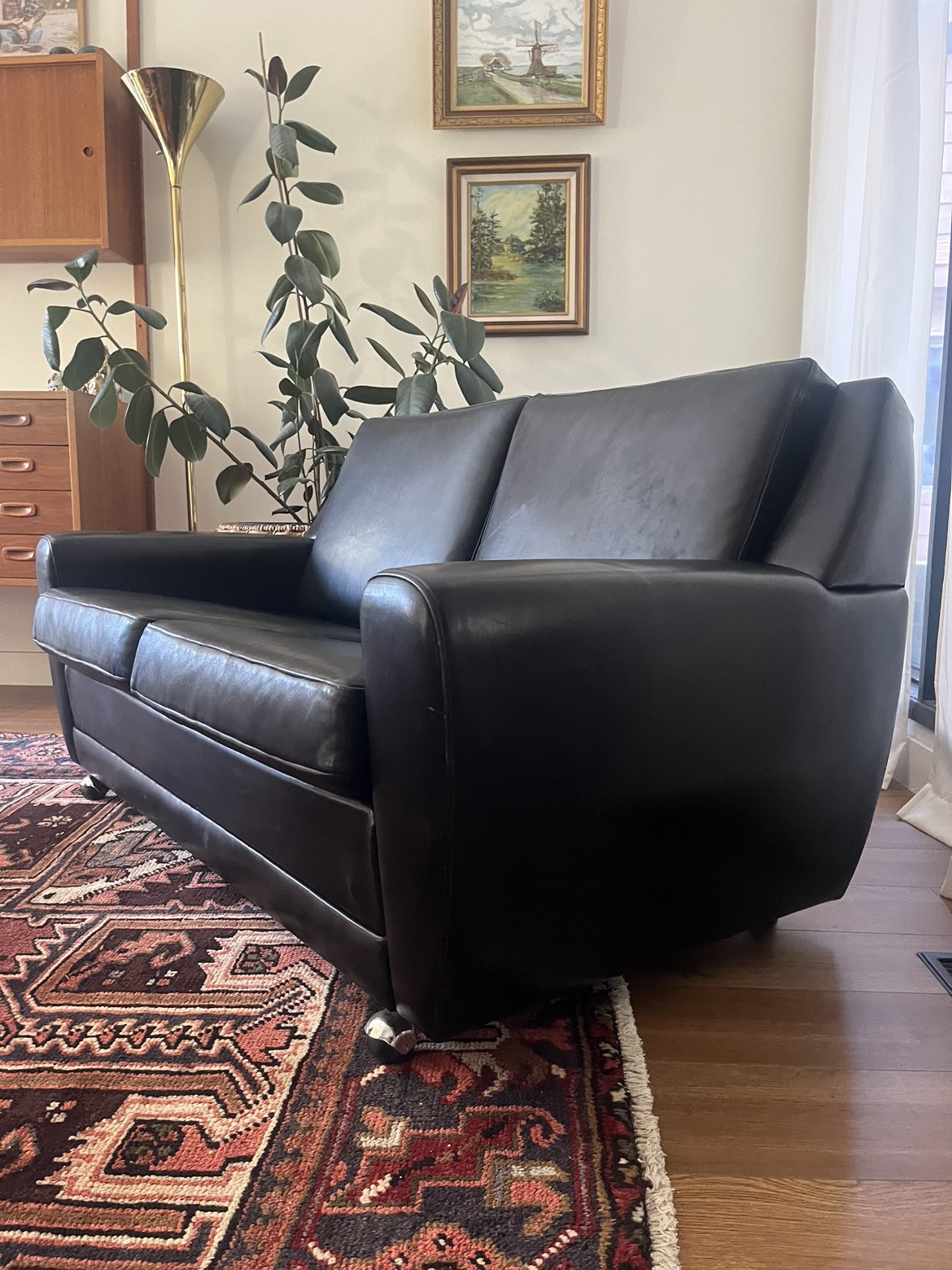 Leather is in fantastic condition especially for the age. No rips, or tears. Some leather conditioner wouldn’t hurt. The patina is beautiful and would bring so much warmth to any room.