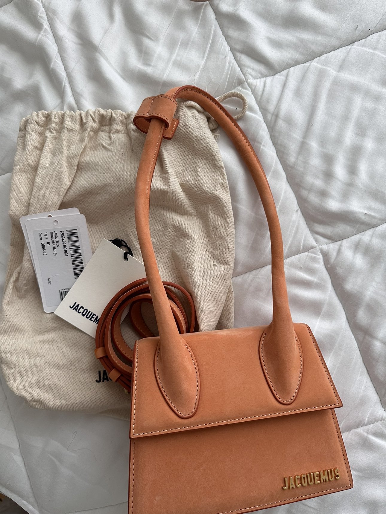 102Jacq bag is a sued material and there’s strap where you can use as a body bag and also the strap for shoulder where you adjust it. I got it from europe from my SA.