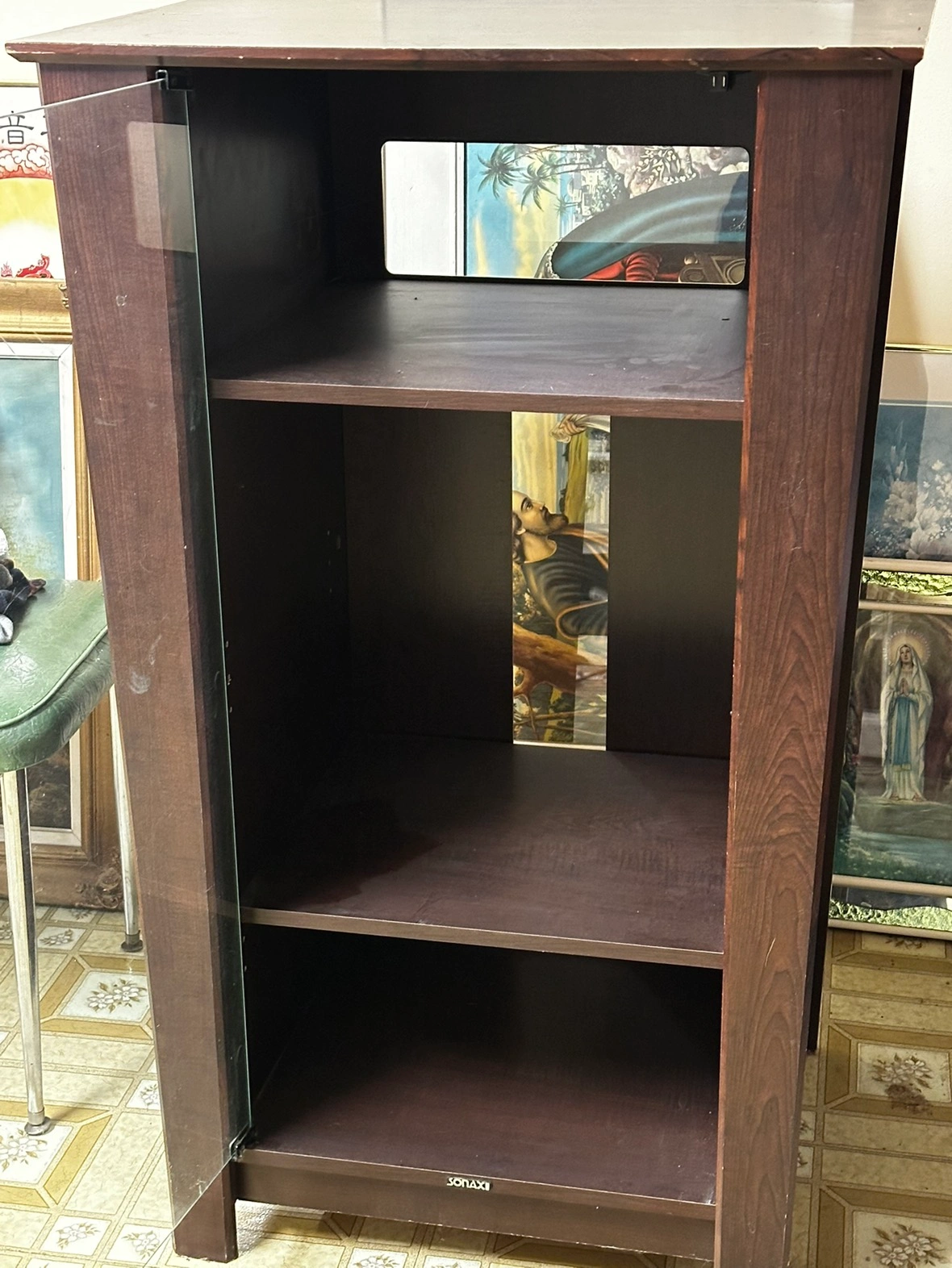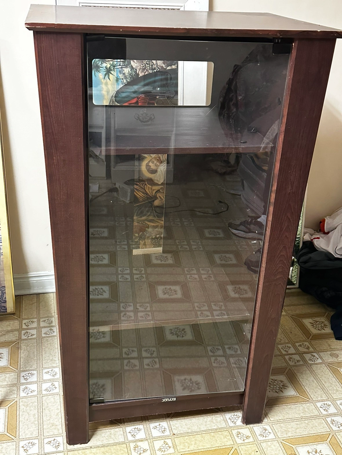 Walnut brown console with glass door
