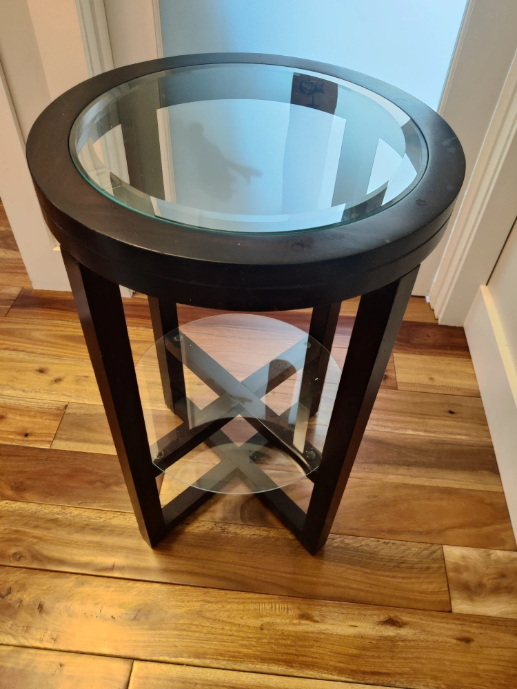 Round wood side table.