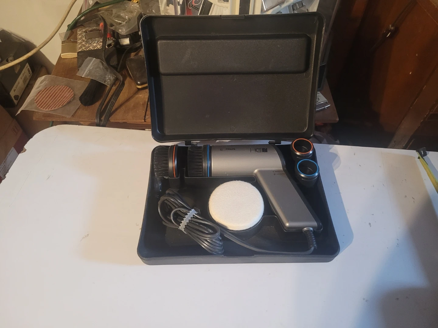 This is a Philips HG shoe polisher kit. It comes with a polisher, cord, and several interchangeable brushes. It's great for keeping your shoes looking sharp!