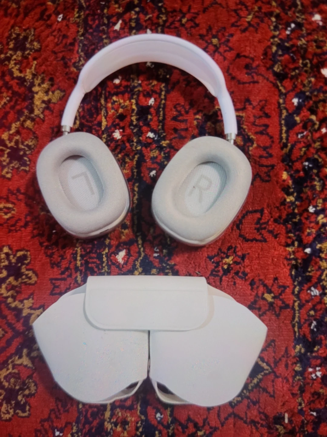 These are the Apple AirPods Max over-ear headphones in silver. They offer high-fidelity audio and active noise cancellation. Includes a smart case for protection.