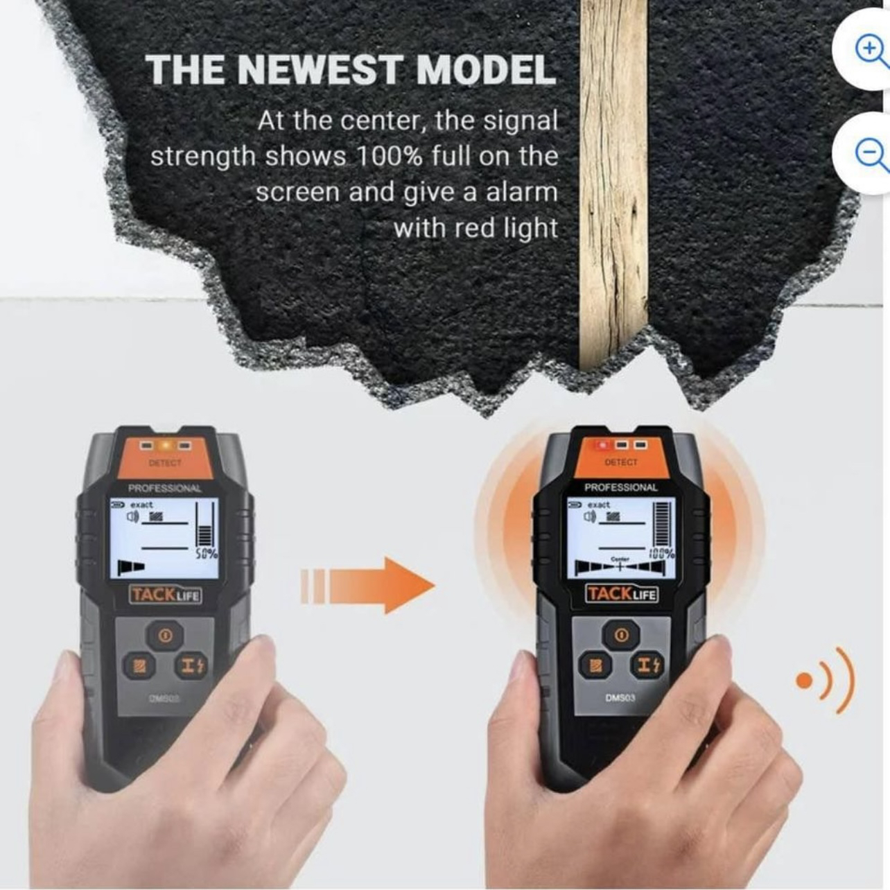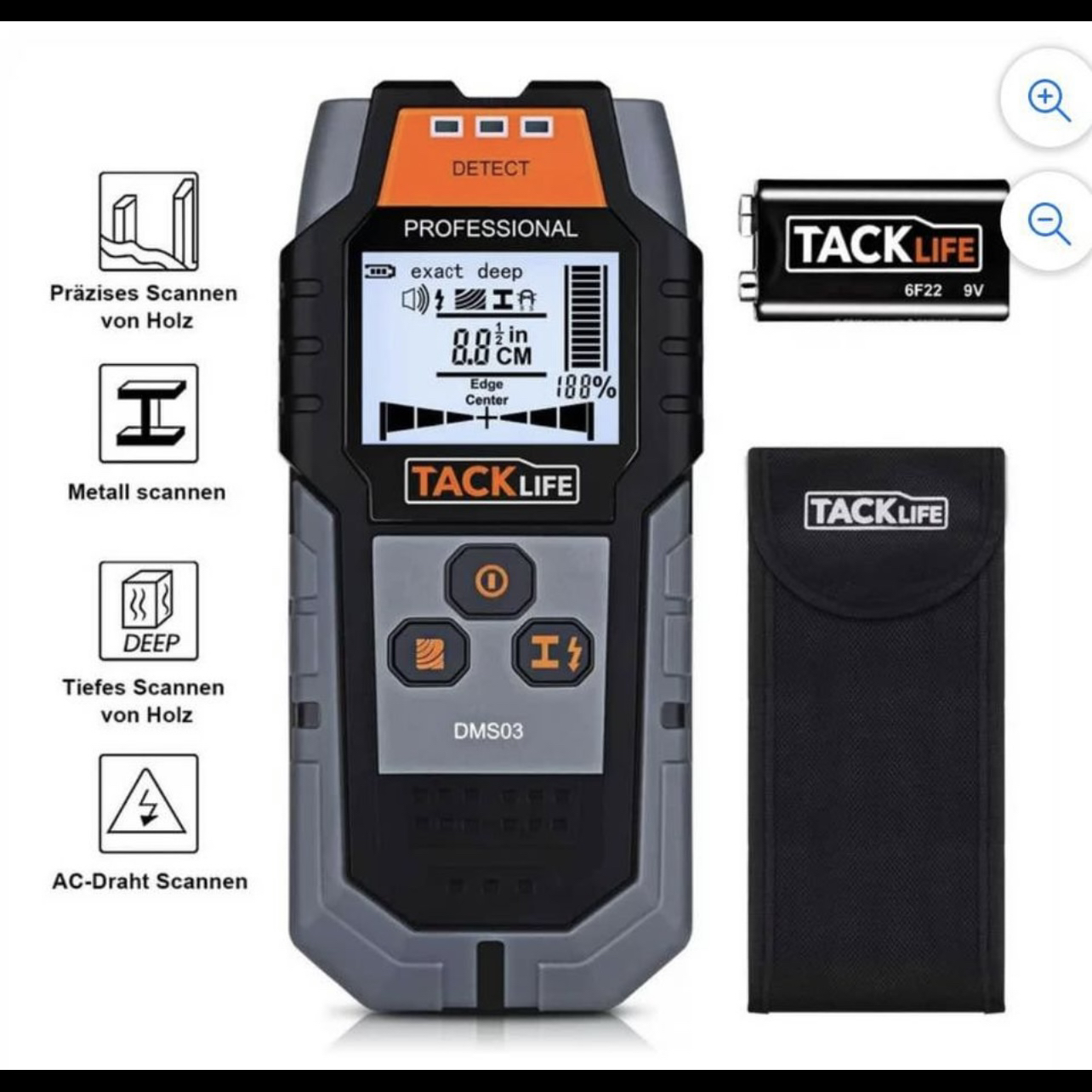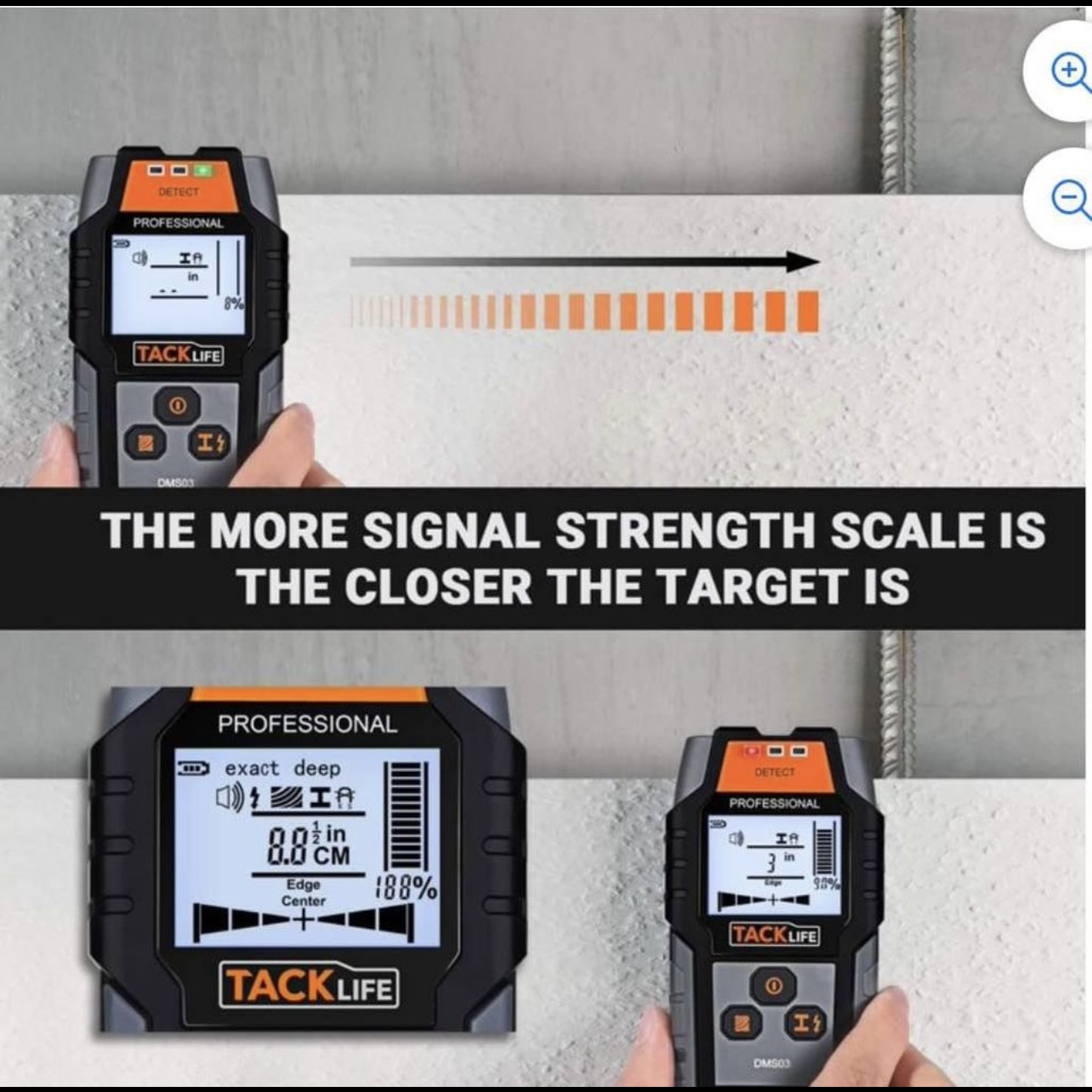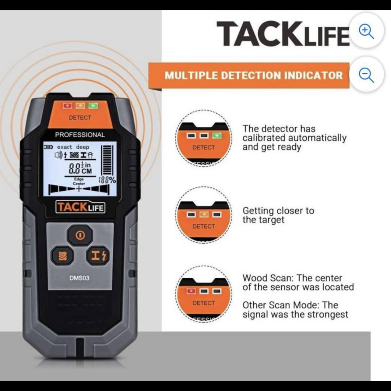 🌟barand new in box🌟 For more information, please copy the title to google, thank you.No bargaining Price is firm,💡Not reply for lowball !! 💡No meet,No delivery ,house Pickup only by Coquitlam. Thanks 💡Cash only ***Batteries not included!!! TACKLIFE DMS03-Multifunctional digital display wall detector, with 4 modes for detection, which greatly broadens your detection range and is more efficient and convenient. Our TACKLIFE Stud Finder with four scanning modes, LCD liquid crystal display,3 signal lights, automatic calibration, ergonomic design, can provide more functions, which improves your work efficiency and your use feeling. Specifications: √Working time: 6 hours √Battery: 9V dry battery √Working frequency: 6.6 kHz √Detection depth: 80mm [FOUR SCANNING MODE FOR DEEPER DETECT] - The stud finder is located in the center of wood studs in exact mode and deep mode up to 0.75 inches 20mm deep and 1.5 inches 38 mm deeper separately; Detecting the ferrous metal up to 4 inches 100mm and non-ferrous metals behind walls up 3.15 inches 80mm; Live AC wire mode locate live AC wires up to 2 inches 50mm deeper. [LARGER LCD SCREEN WITH THREE SIGNAL LIGHTS] - The detector has a large LCD display which could show four scan mode, detection depth, detection signal strength, battery, and audio signal indicator as well as the edges indicator, etc; The light show green when the detector was calibrated and get ready, as getting close to the center of the stud, the indicator will turn yellow to red. [AUTOMATIC CALIBRATION & AUDIBLE WARNING] - The wall detector could calibrate automatically, no need to press the button manually all the time, which was finished in the condition without nails, AC wires, or metal; The multi-function wall detector finders will provide an audio tone sound continually when the stud or AC wire is locating, saving your time and money. [UPGRADED AND ERGONOMIC DESIGN] - The TACKLIFE stud finder takes with upgraded and ergonomic design, which is so comfortable to hold from any angle satisfying your DIY and home projects; The cotton on the back has prevented the damage caused to the wall, safely and conveniently.