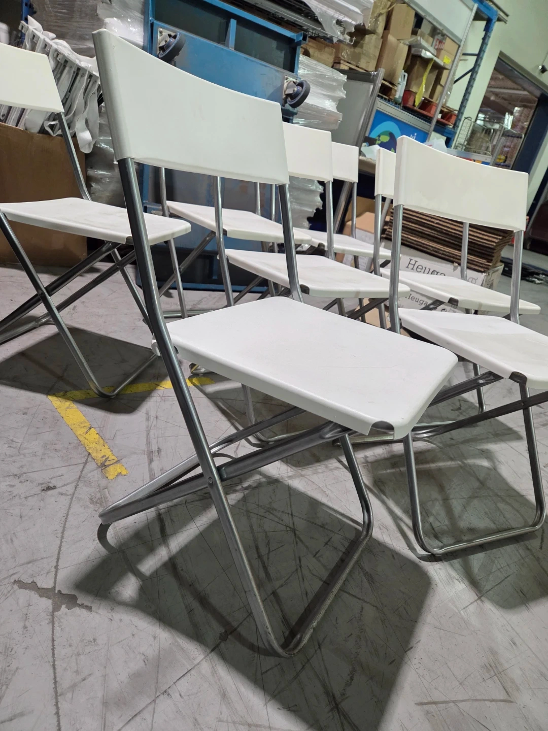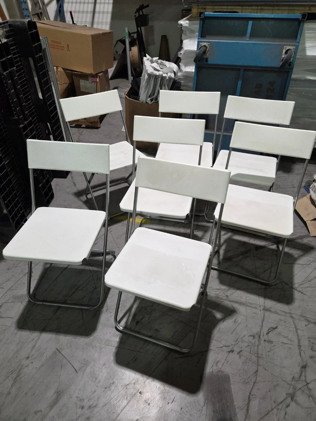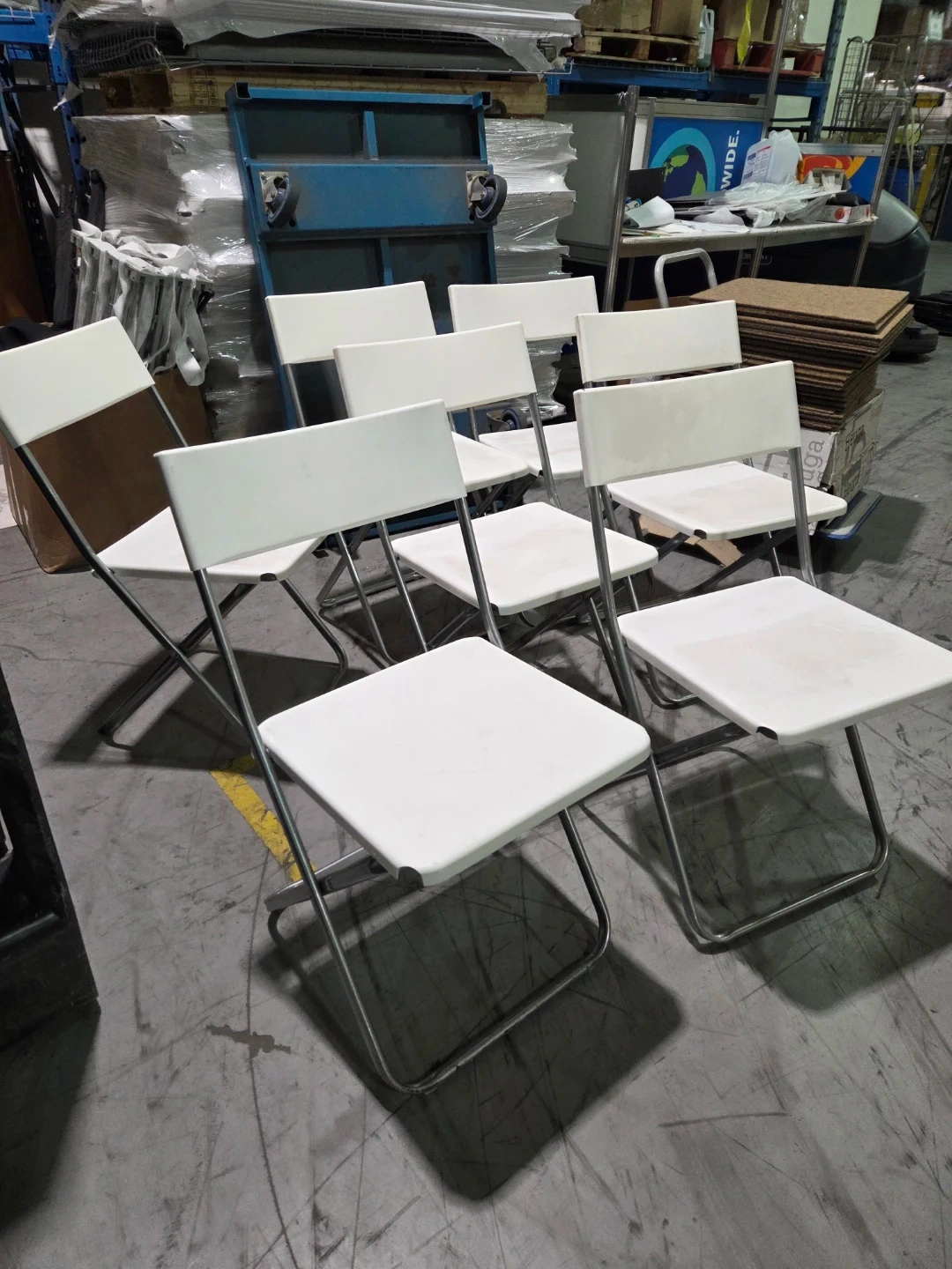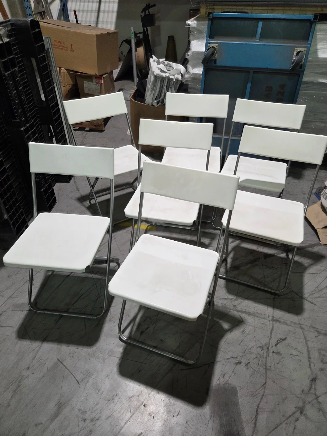 7 white chair for sale. Hardly used was 30 plus tax and shipping. cash only.Must pickup. Please. no etransfer or long holds. this is a cash price. bring cash.
