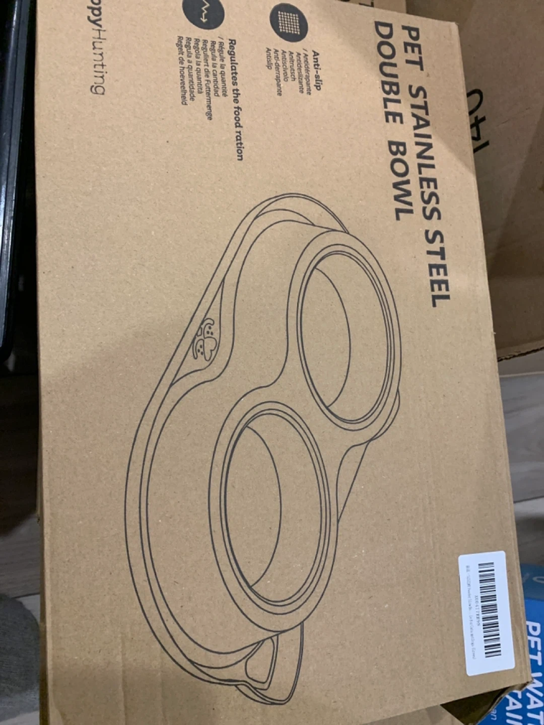 This pet double bowl is made of stainless steel. It's anti-slip and designed to regulate food ration. Perfect for feeding pets.