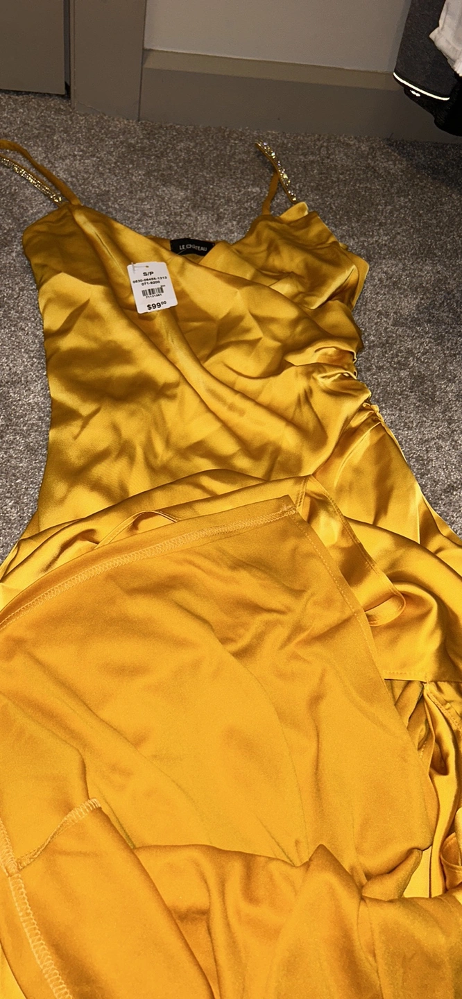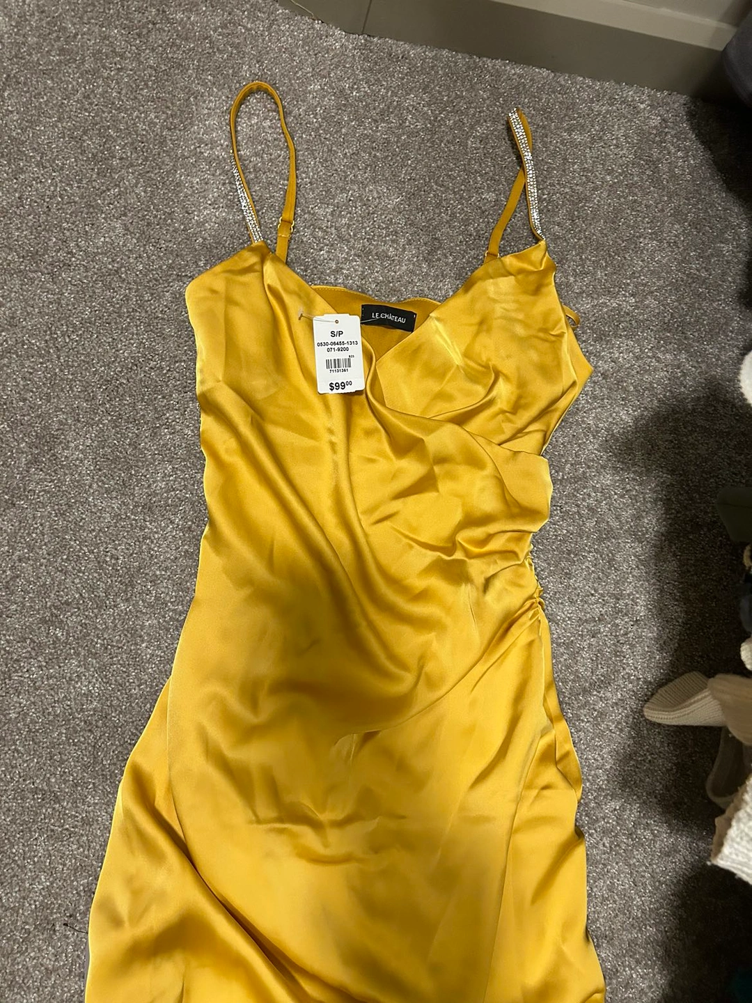 From le chateau, size S. Colour is truest in the third photo. Double layered so not see through and has a zipper on the side