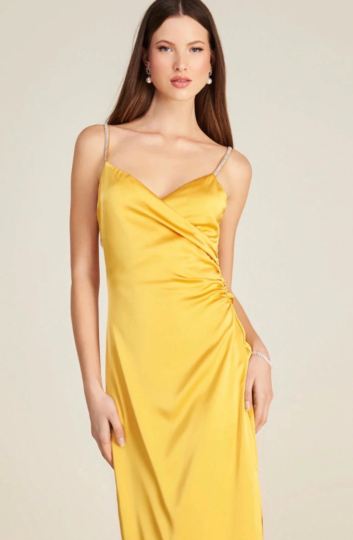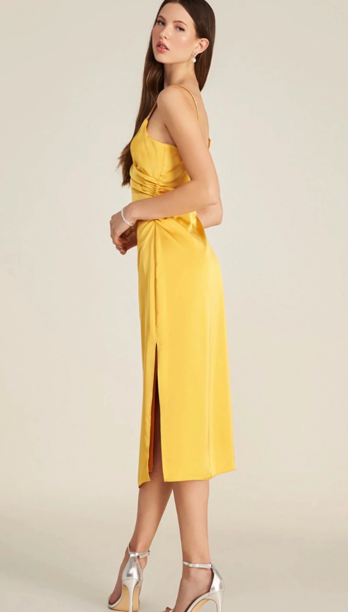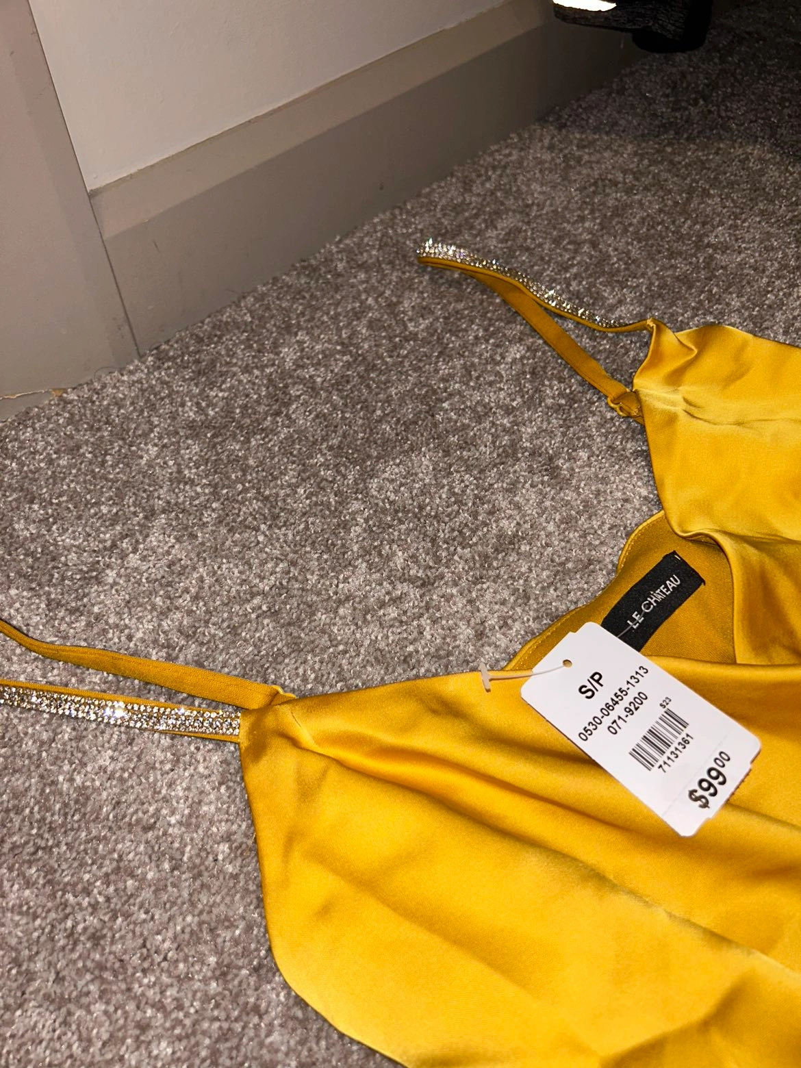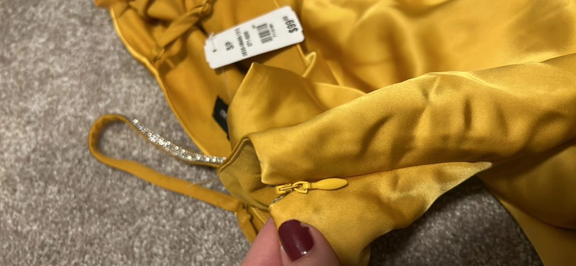 From le chateau, size S. Colour is truest in the third photo. Double layered so not see through and has a zipper on the side