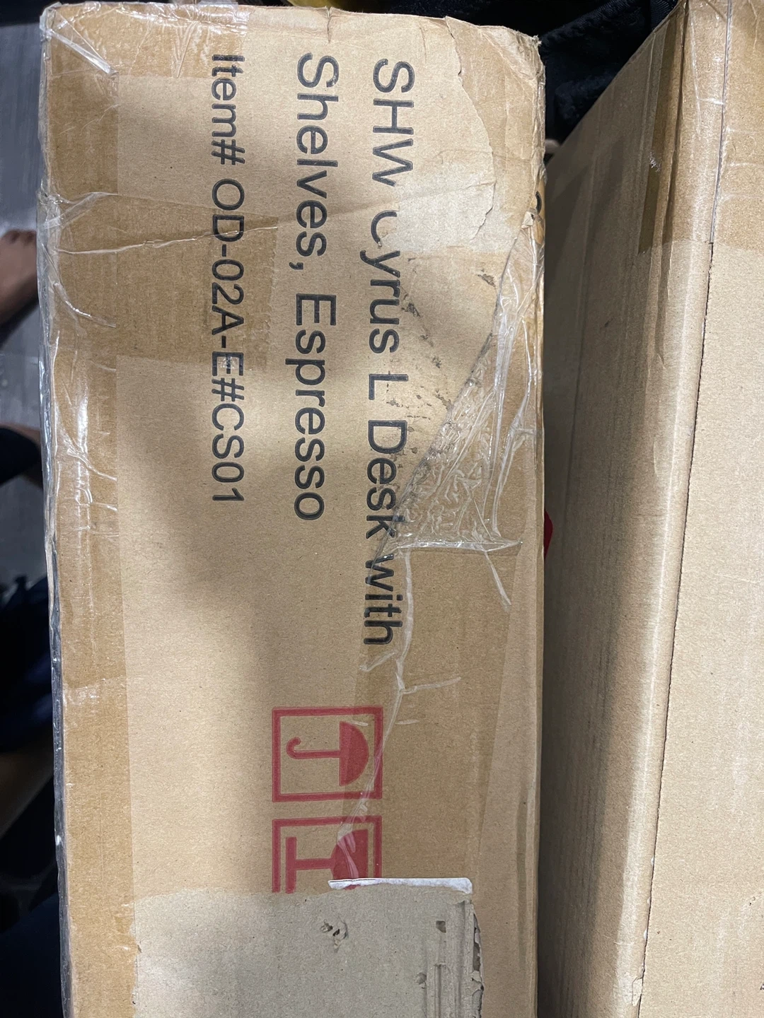 SHW Cyrus L-Shaped Corner Desk with Shelves, Espresso