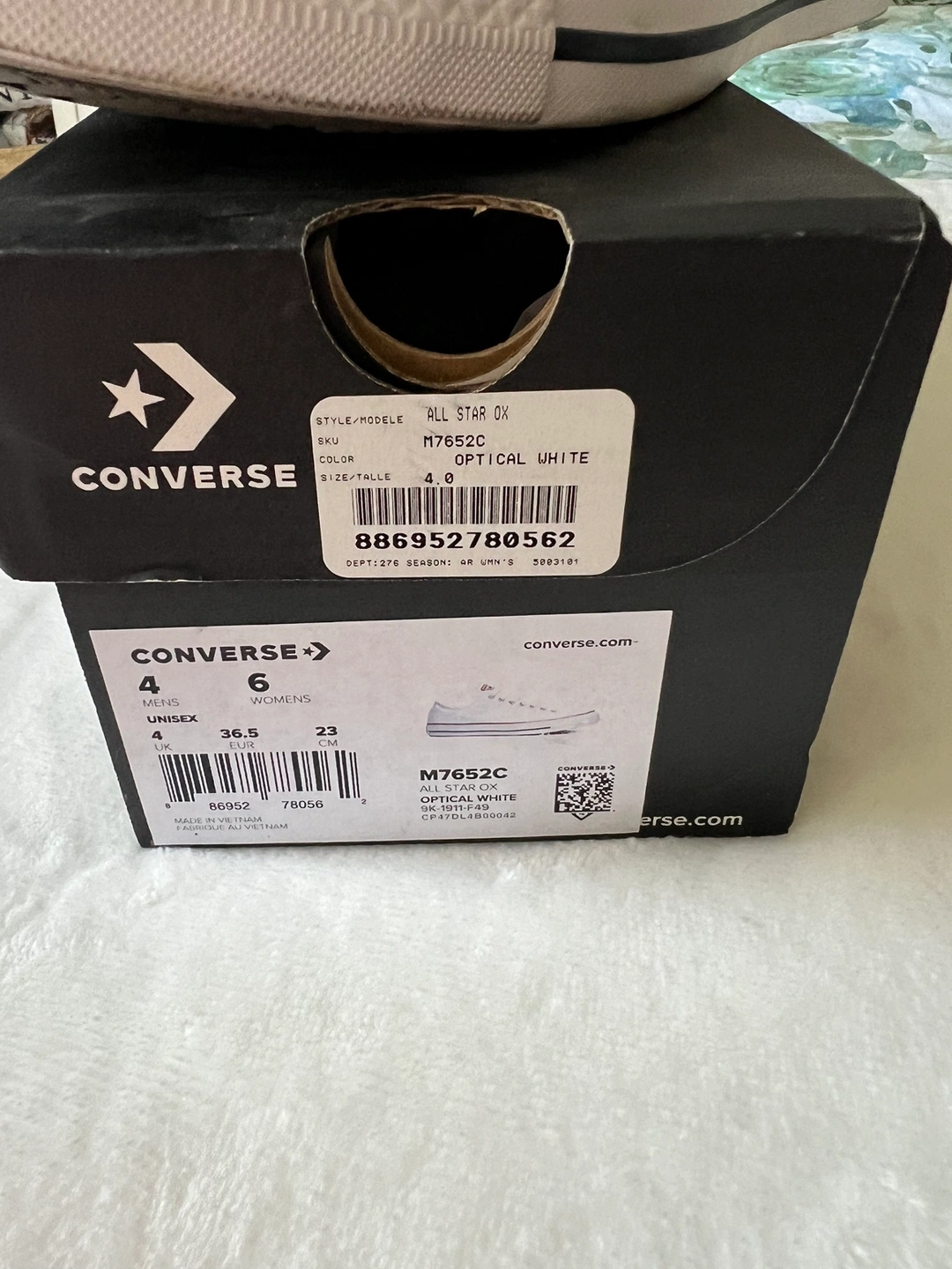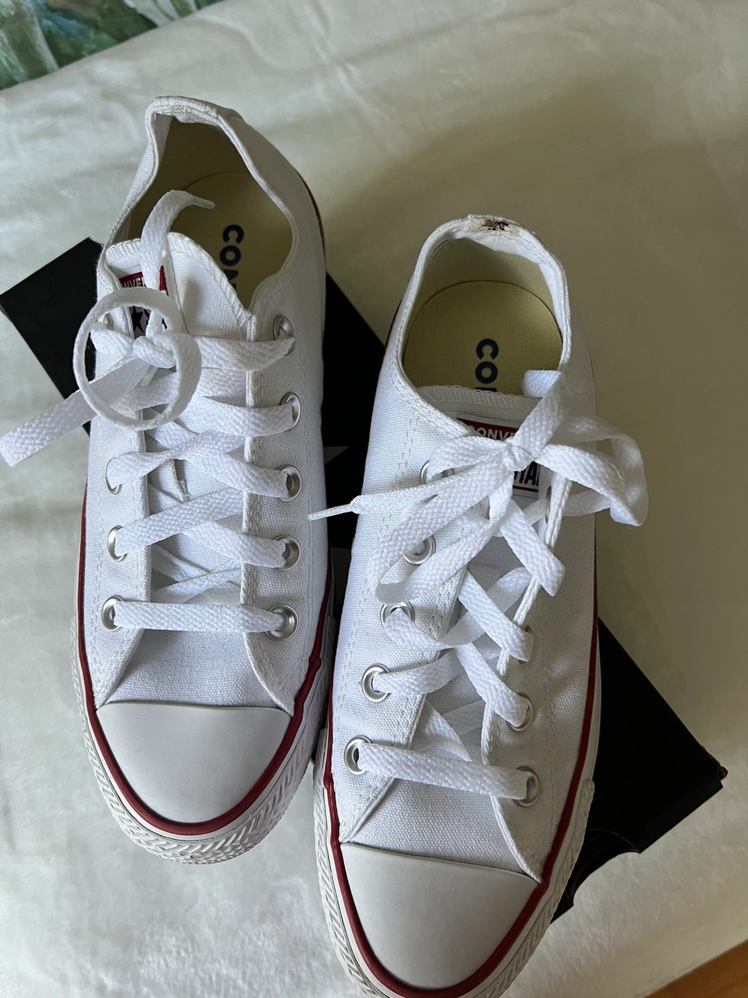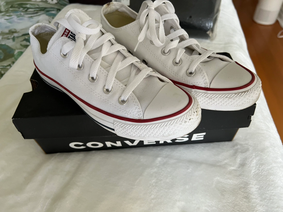 Womens all stars converse low top white sneakers. Worn once. In excellent condition. UK4, EUR 36.5 US 6. Shade: optical white. Canvas shoes.