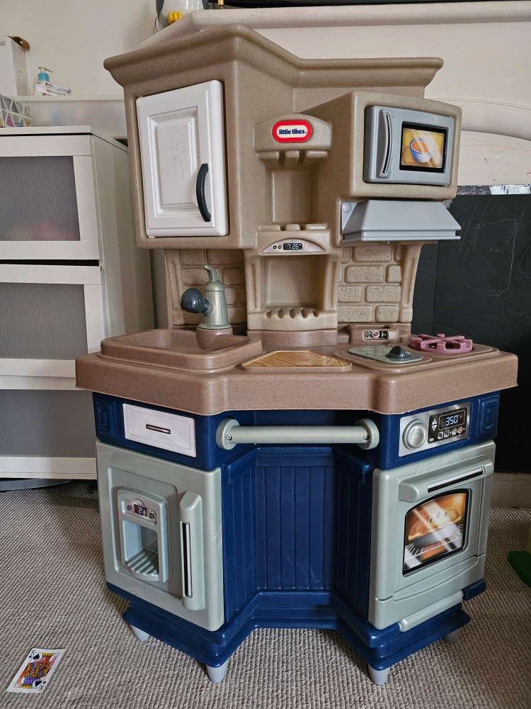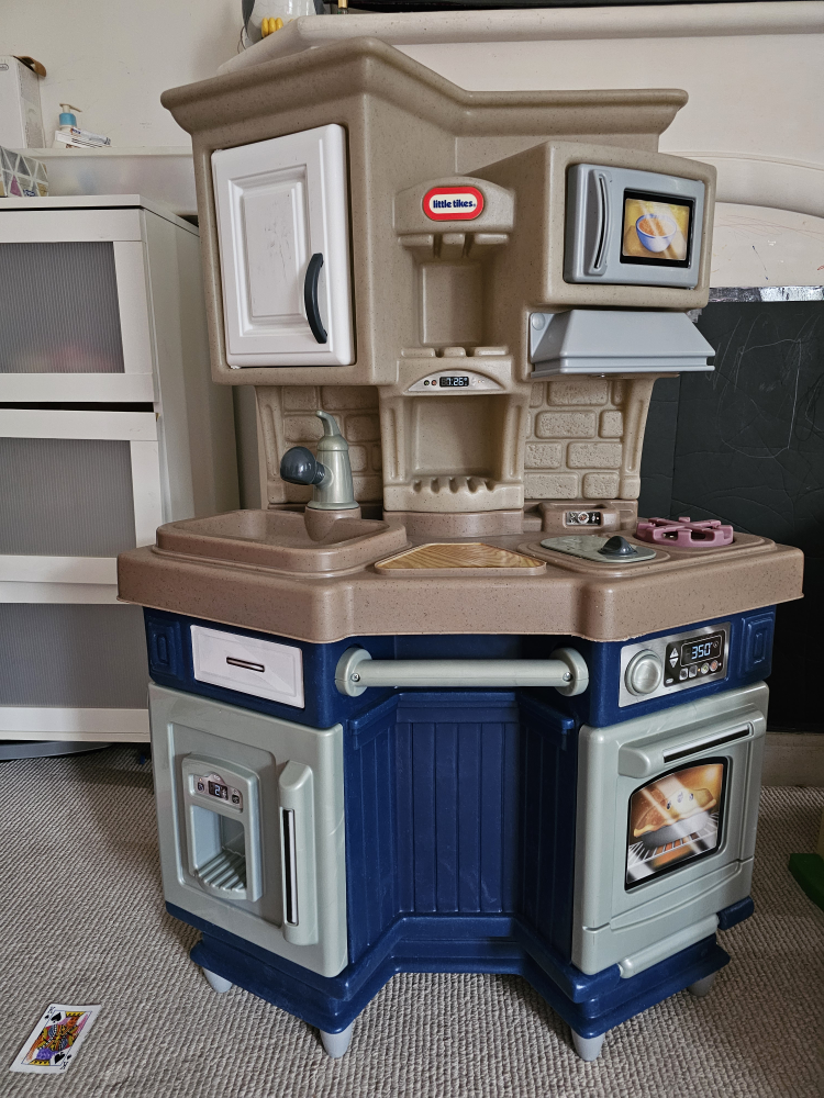 83Little Tikes Super Chef Kitchen Blue & Cream, 14.00 l x 28.00 w x 40.00 h inches Very good condition. pick up Bathurst and Finch