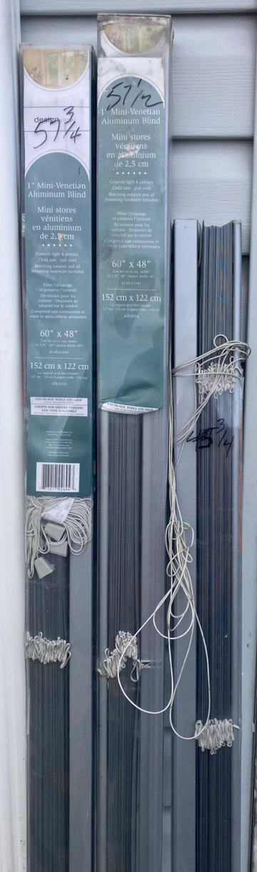 Three new sets of grey mini blinds for $25. Can be cut to desired size. Pick up on 152 close to 40th ave. First come first serve or will hold with etransfer. Thank you!