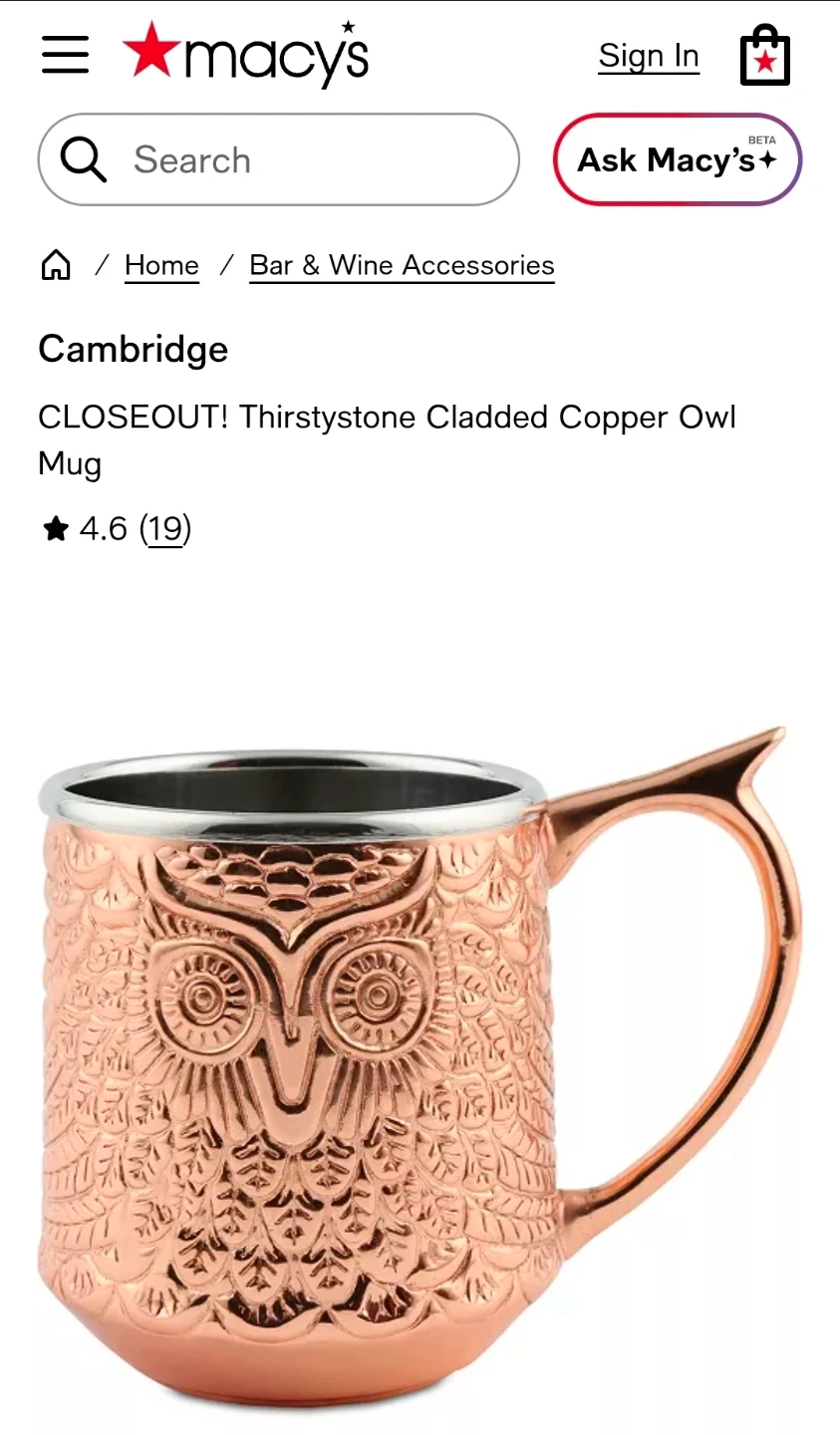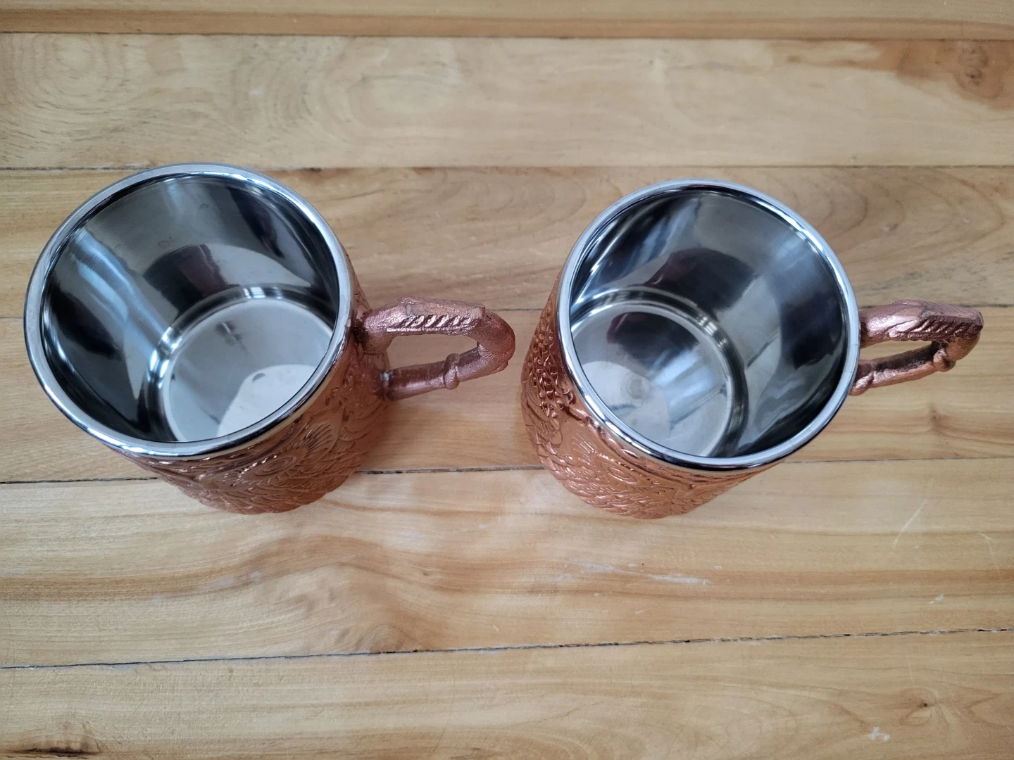A whimsical addition to your bar cart, our exclusive owl Moscow mule mug is made in India with intricate embossing. Crafted of stainless steel with a luminous copper finish on the exterior, our woodland-inspired cocktail cup keeps your ginger beer cold. This large-eyed feathered friend makes a delightful vessel for any refreshing drink or a fabulous gift for an aspiring mixologist.