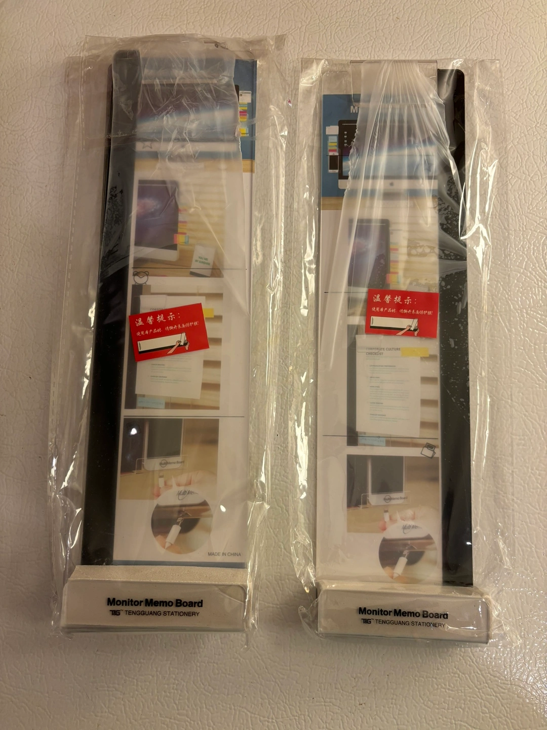 Fits standard monitors. 3 in a set - 2 to line the right side of any monitor and 1 to line the left side of any monitor. Great to hold post-it notes and your smartphone beside your monitor.