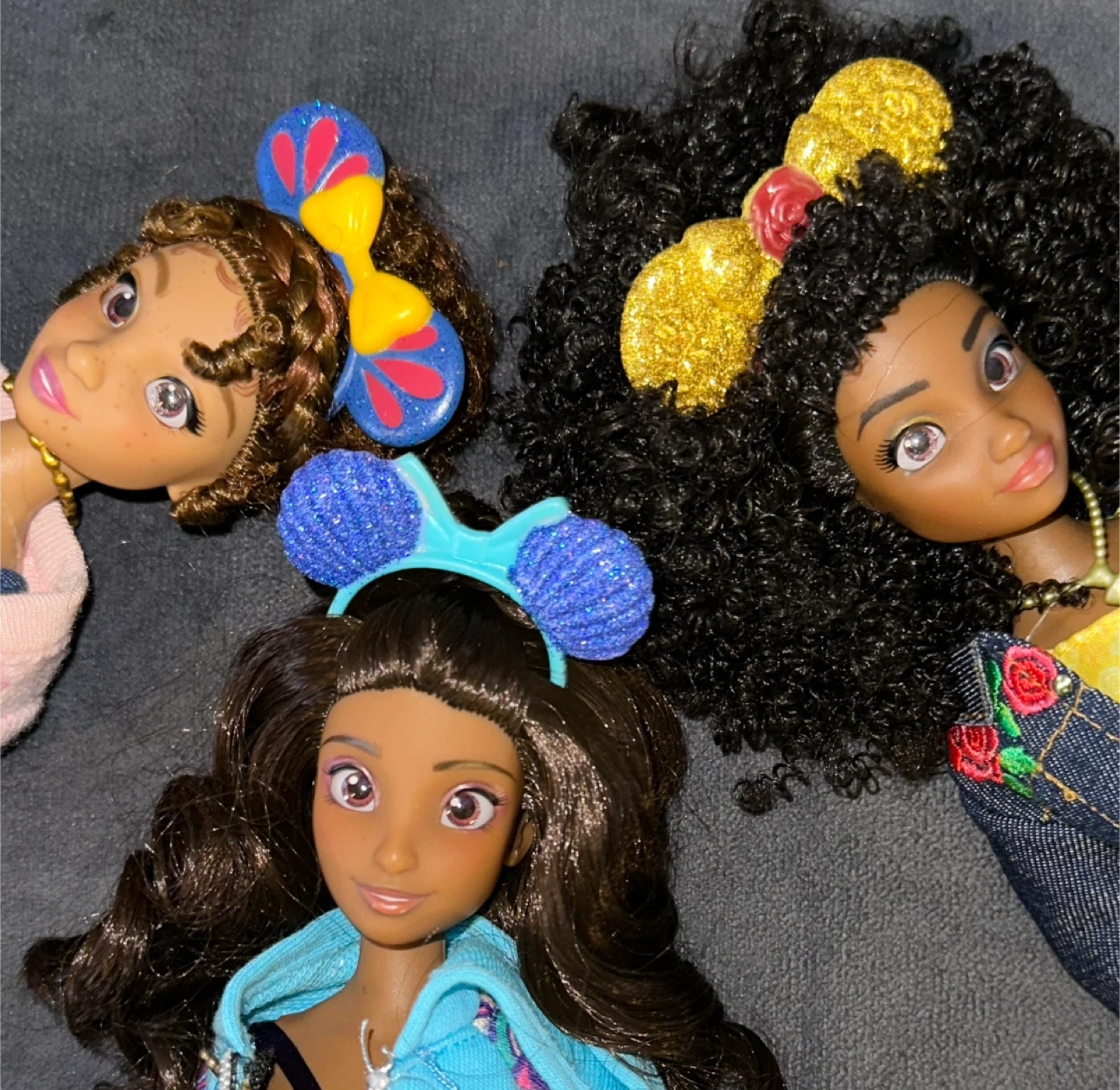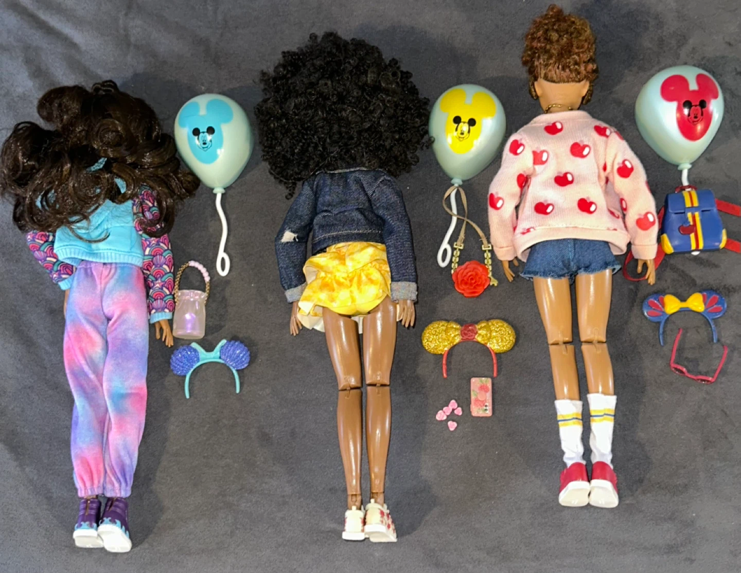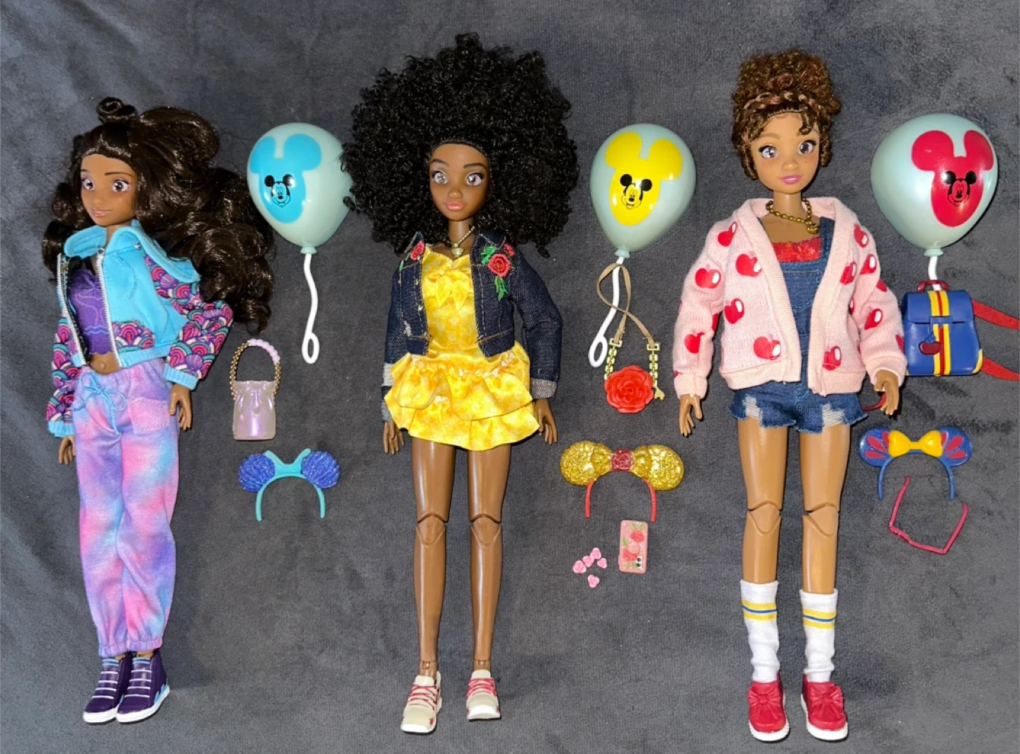 From my own personal collection, we have three Disney ILY dolls with the original clothing, shoes, and accessories