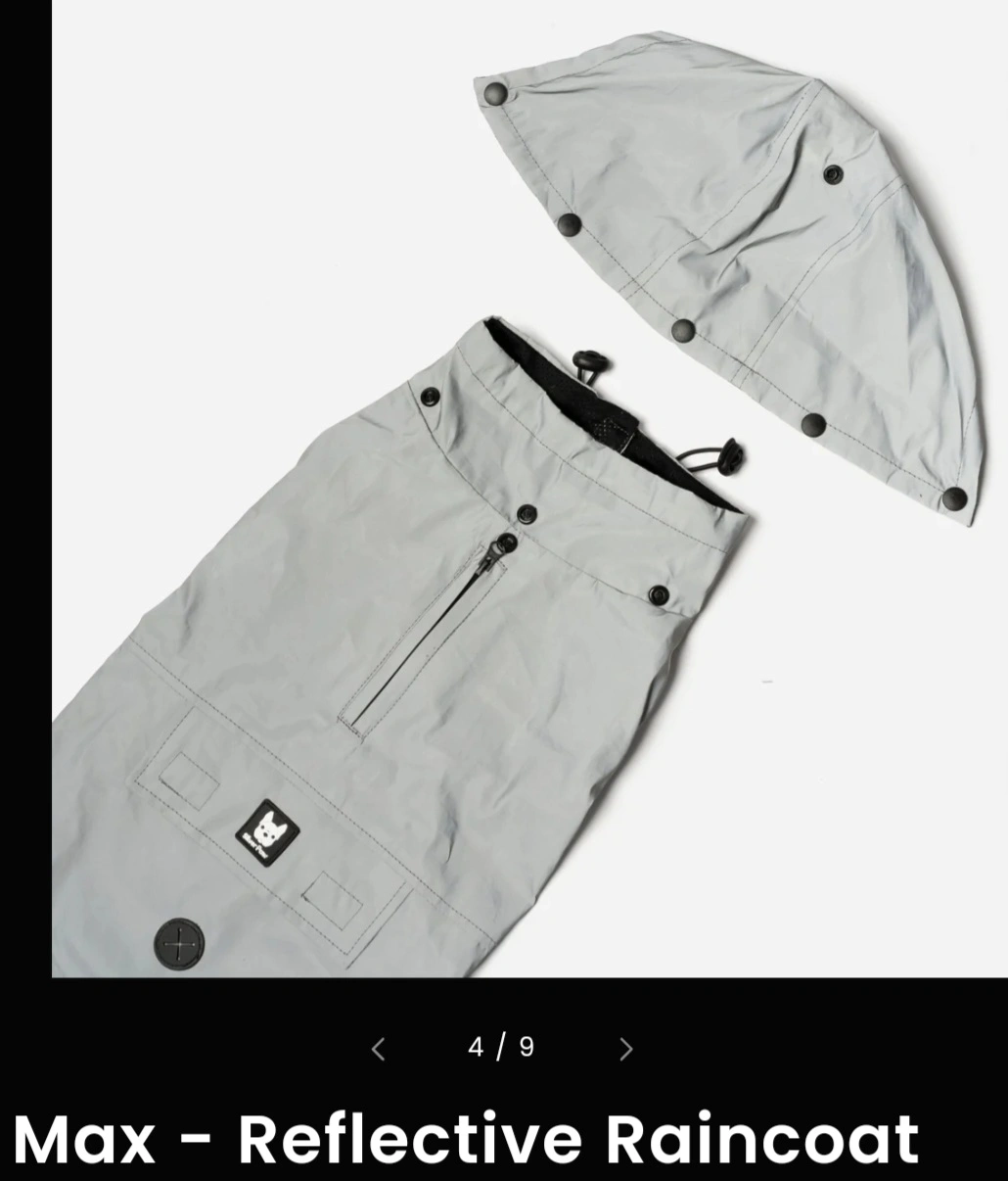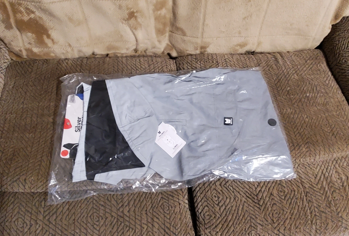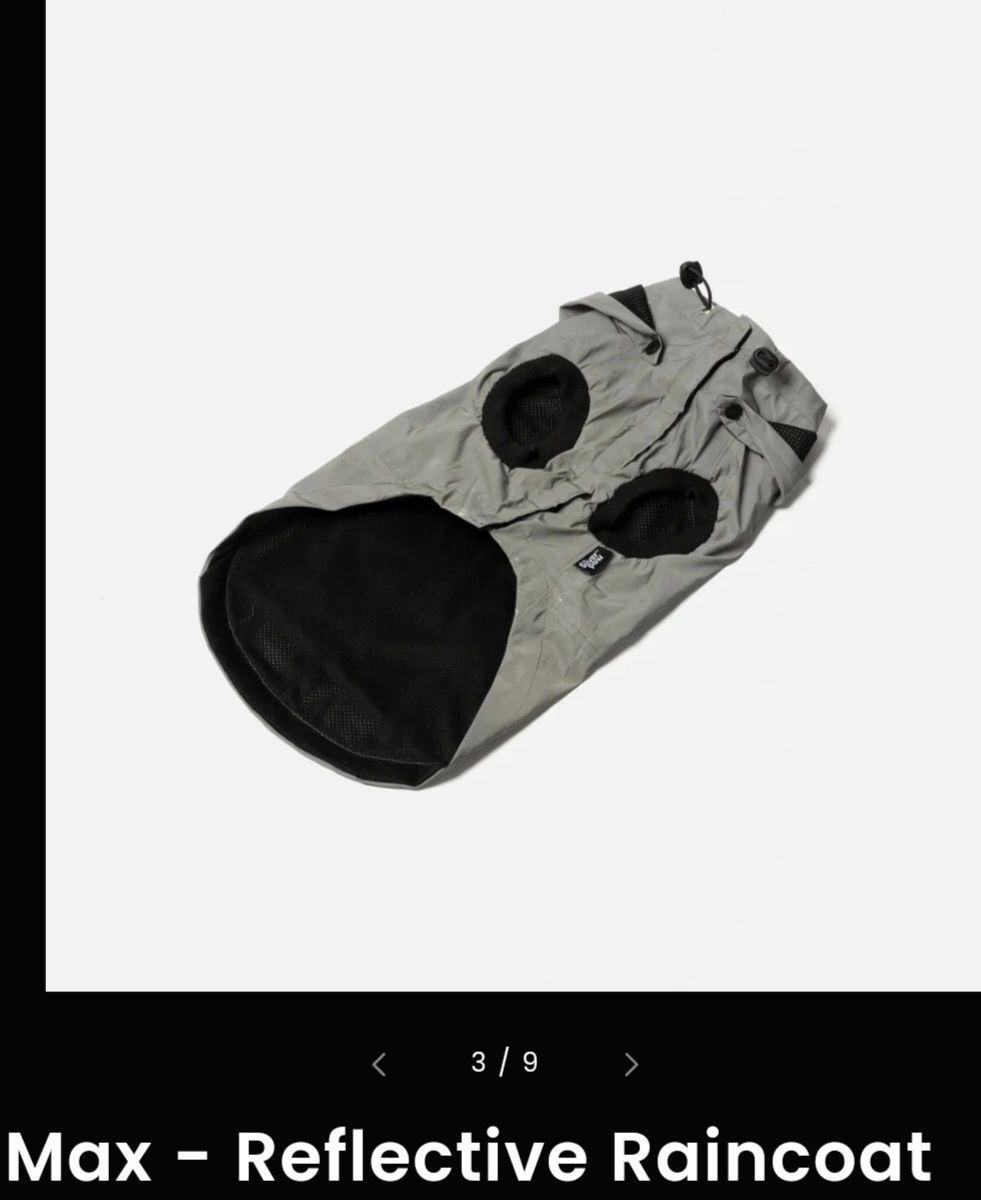 Silver Paw Brand Grey Max Reflective Dog Rain Coat - size 2XL dog raincoat with reflective details. Includes a hood.