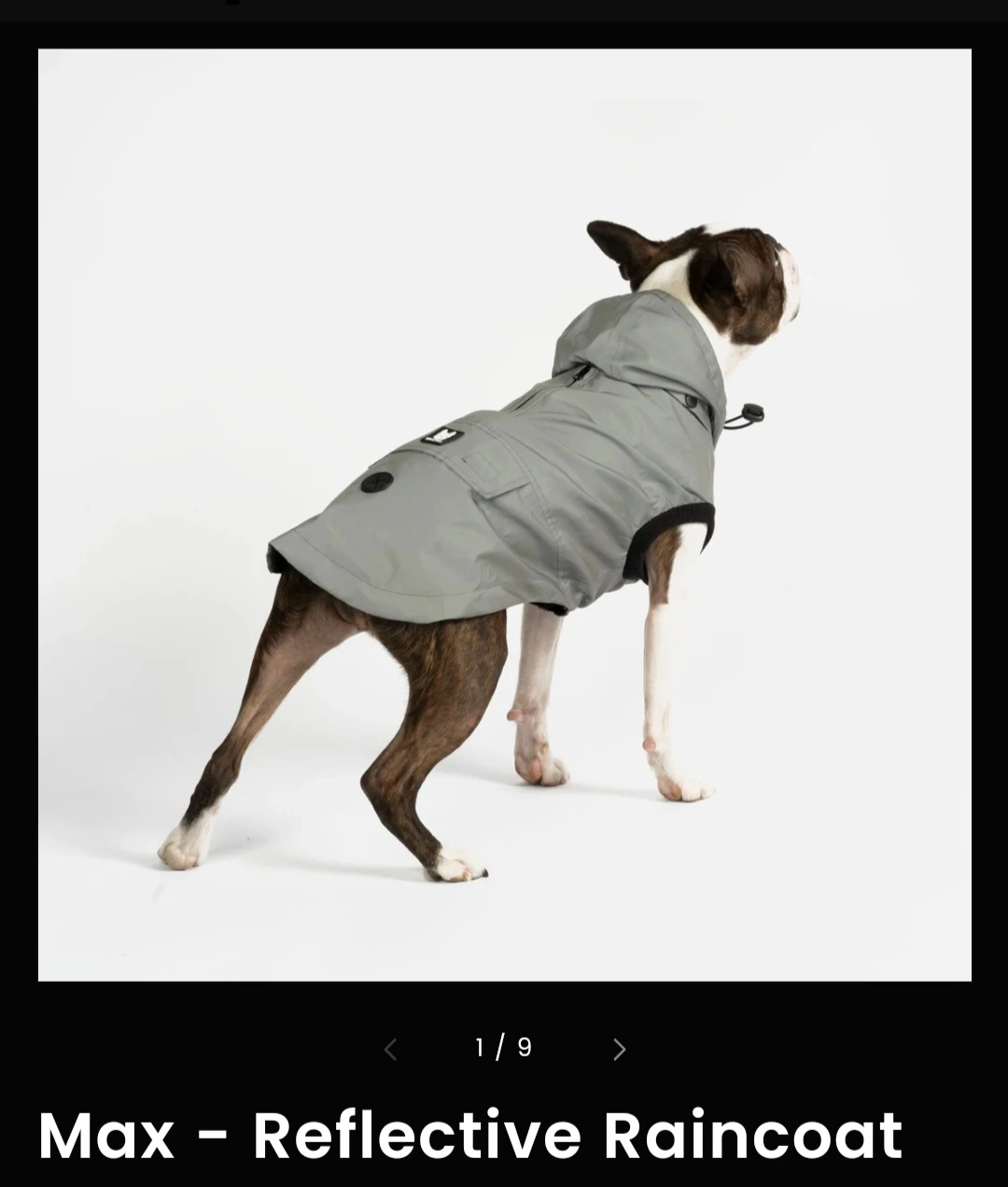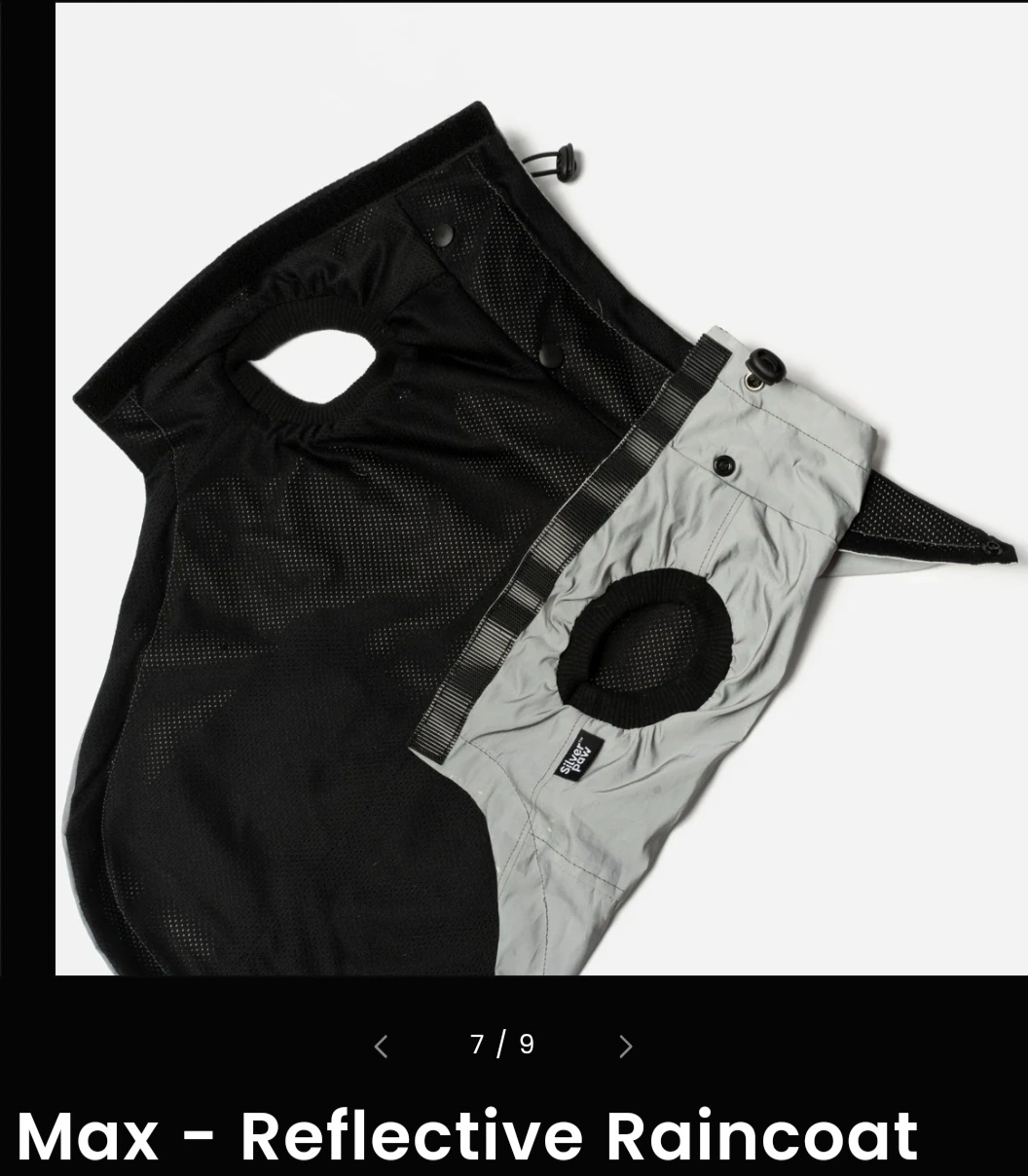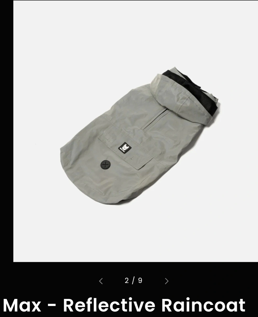 Silver Paw Brand Grey Max Reflective Dog Rain Coat - size 2XL dog raincoat with reflective details. Includes a hood.