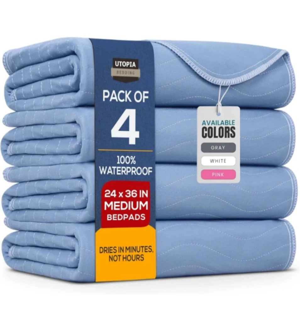 Utopia Bedding (Pack of 4) Waterproof Incontinence Pads Quilted Washable & Absorbent Bed Pad for Adults and Kids 34 x 36 inches (Blue