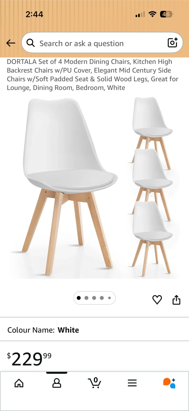 Buy & SellDORTALA Set of 4 Modern Dining Chairs - WhiteDORTALA Set of 4 Modern Dining Chairs - White$179DORTALA modern dining chairs in white. These chairs have a soft padded seat and solid wood legs. They're great for a dining room or kitchen.ConditionLike newWHERE TO MEETCheck LocationView MapSELLERverifiedDavidThornhill600 reviews0 chats·2 favorites·19 viewsSEND CHAT TO SELLERHi David! I’m interested in your listing.Hi David! I’m interested in your listing.Get the Karrot app to chatSign In to chat