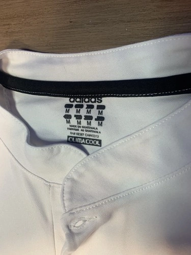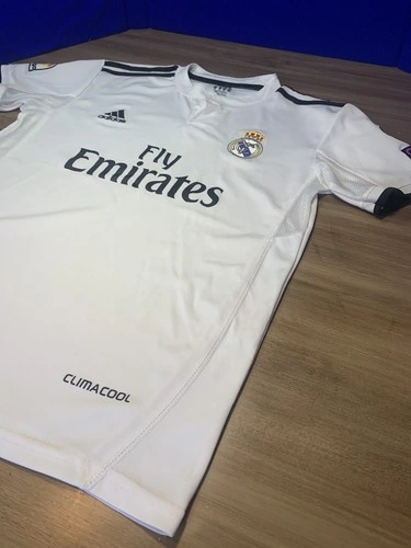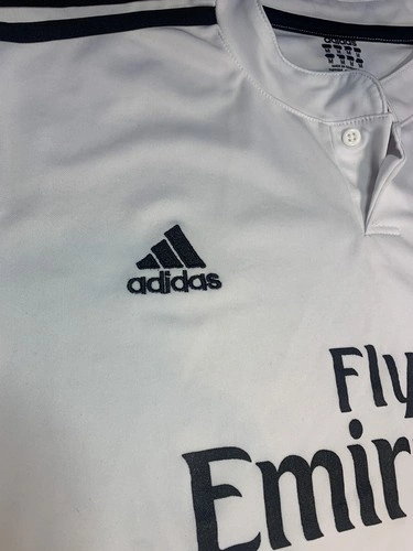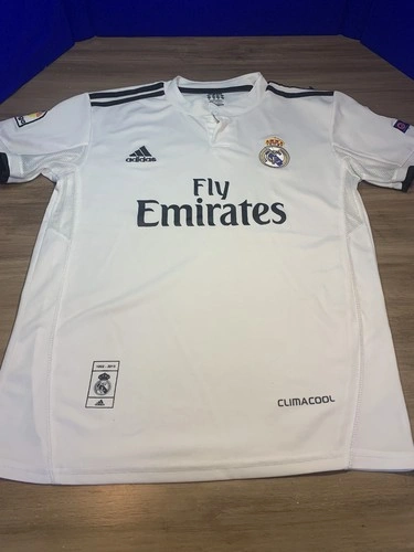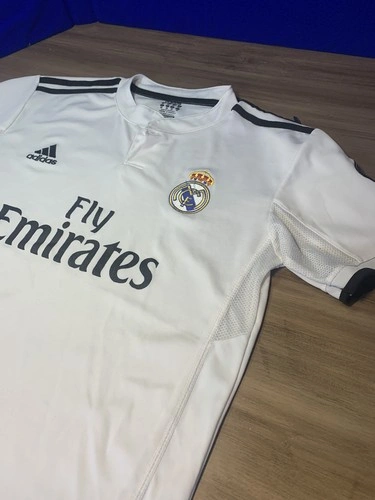 Showcase your allegiance to Real Madrid with this classic white Adidas 2019 Home Jersey. It features the iconic Adidas and Real Madrid logos. This is a men's size medium, offering a comfortable fit. Made from high-quality materials for durability and ease of care. Feel free to message if you have any questions!