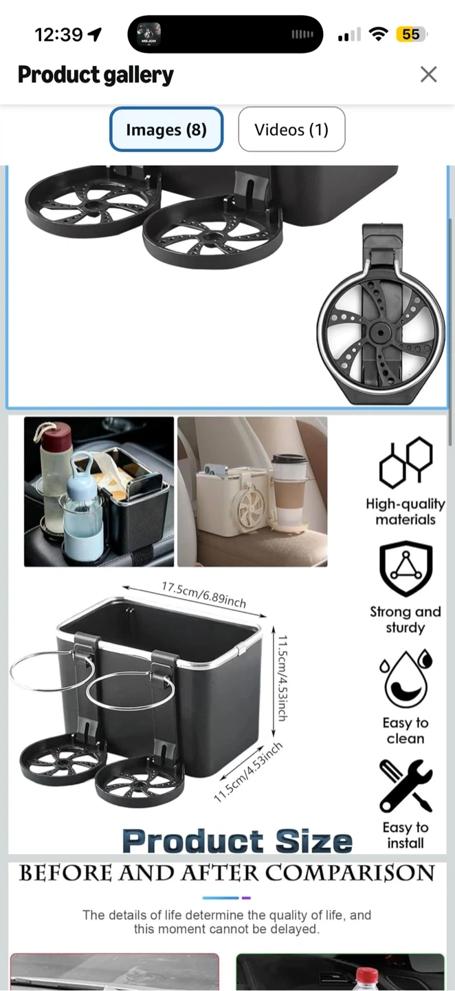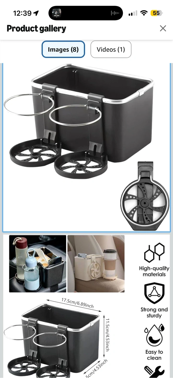 This car seat organizer features two cup holders and a spacious storage compartment. It's made from high-quality materials and is designed to be strong and sturdy. Easy to install in your vehicle.