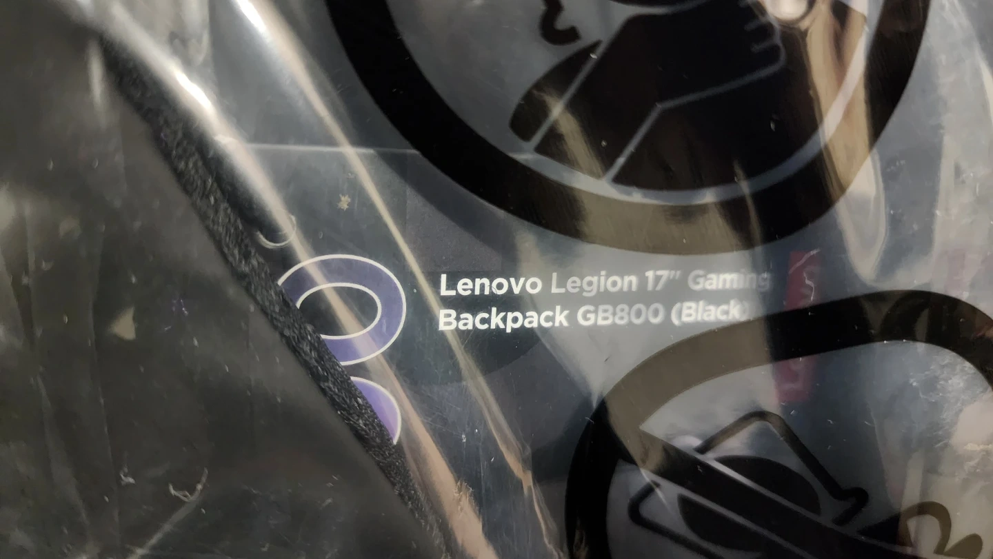 This is a brand new Lenovo Legion 17-inch gaming backpack in black. It's the GB800 model, still in its original packaging. Designed for gamers, it offers ample space for laptops and gear.