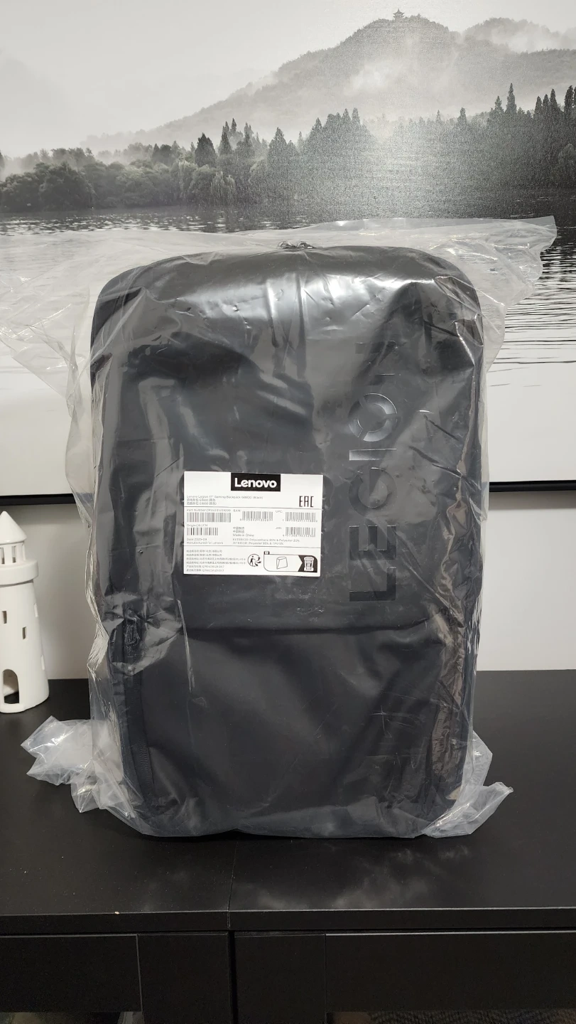This is a brand new Lenovo Legion 17-inch gaming backpack in black. It's the GB800 model, still in its original packaging. Designed for gamers, it offers ample space for laptops and gear.